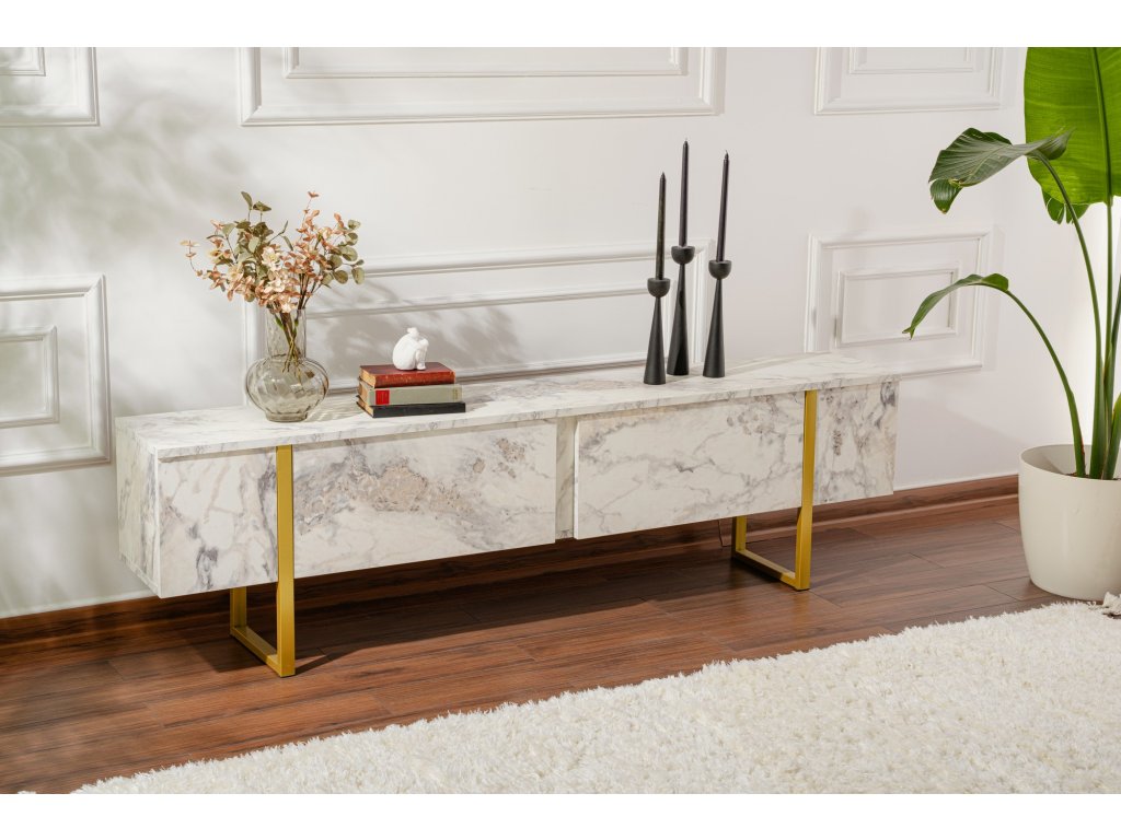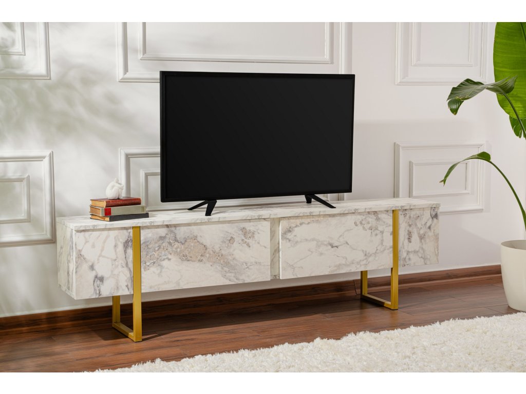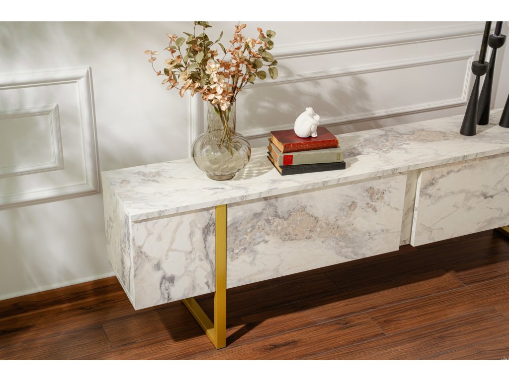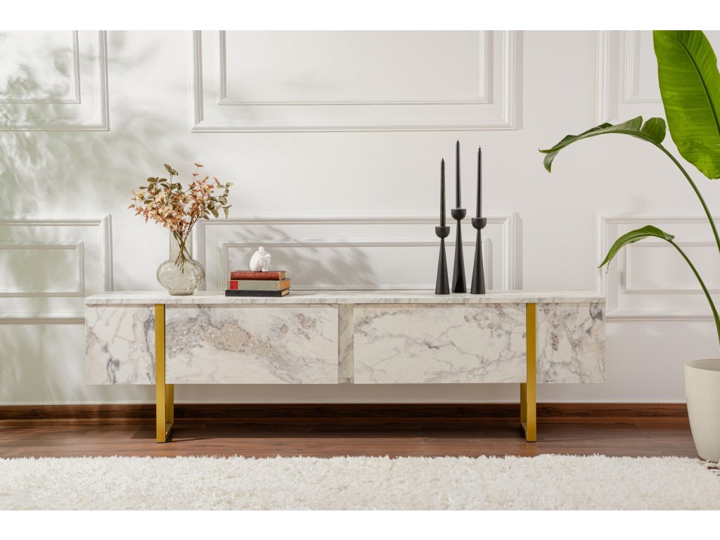 TV stolík na nožičkách FASE, mramor freesia / zlatá