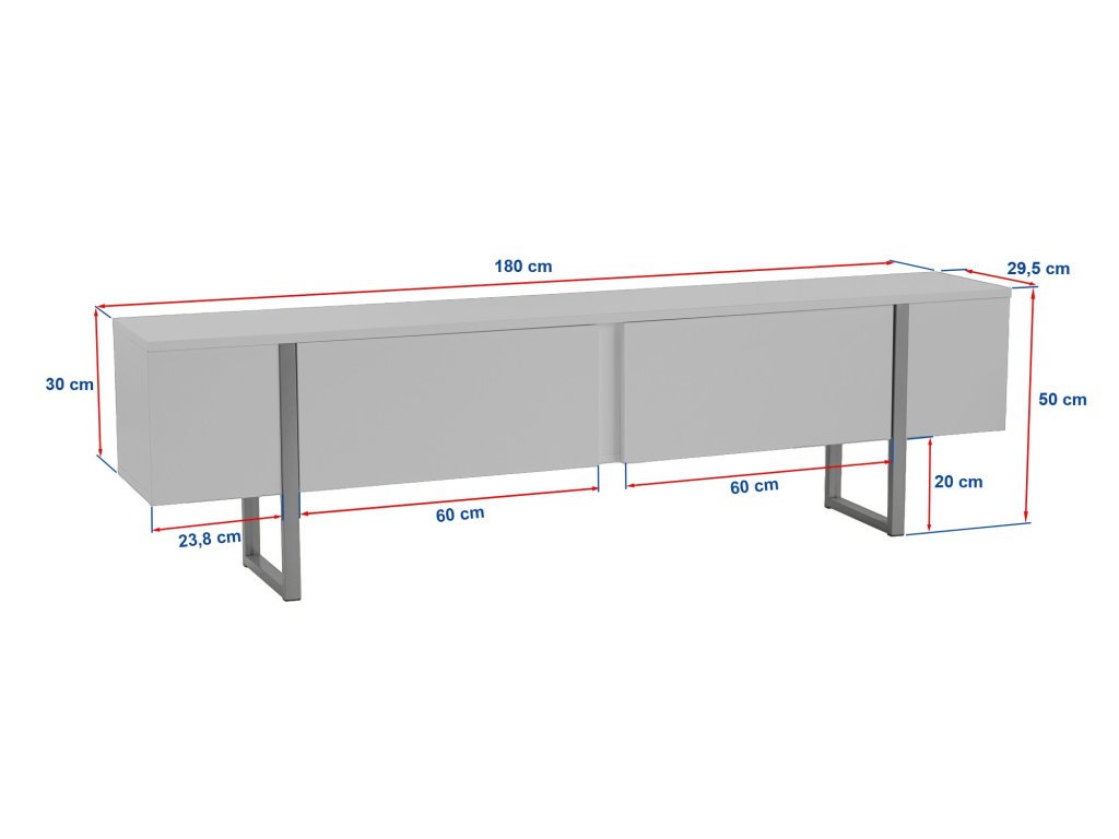 Tento televízny stolík je vyrobený zo 100% drevotriesky s melamínovým povlakom a je nielen štýlový, ale aj odolný a má dlhú životnosť. Hrúbka 18 mm zaisťuje stabilitu a robustnosť, zatiaľ čo šírka 180 cm, výška 50 cm a hĺbka 29,5 cm poskytujú dostatok priestoru pre váš televízor a mediálne zariadenie.