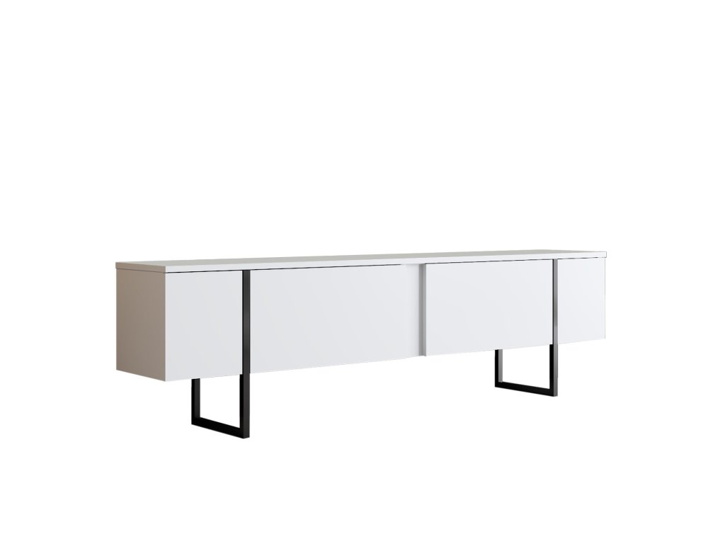 Náš televízny stolík je vyrobený zo 100% drevotriesky s melamínovým povlakom a je navrhnutý tak, aby vydržal. Hrúbka 18 mm zaisťuje výnimočnú pevnosť a stabilitu a poskytuje pevný základ pre váš televízor a ďalšie mediálne zariadenia. Vďaka kovovým nohám ponúka tento stolík dodatočnú oporu a dodáva celkovému dizajnu nádych elegancie.