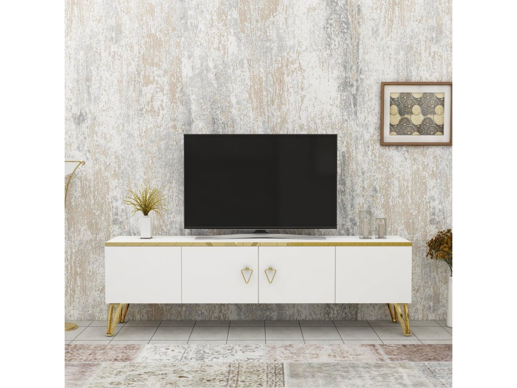 TV stolík na nožičkách INDIANA, biela/zlatá