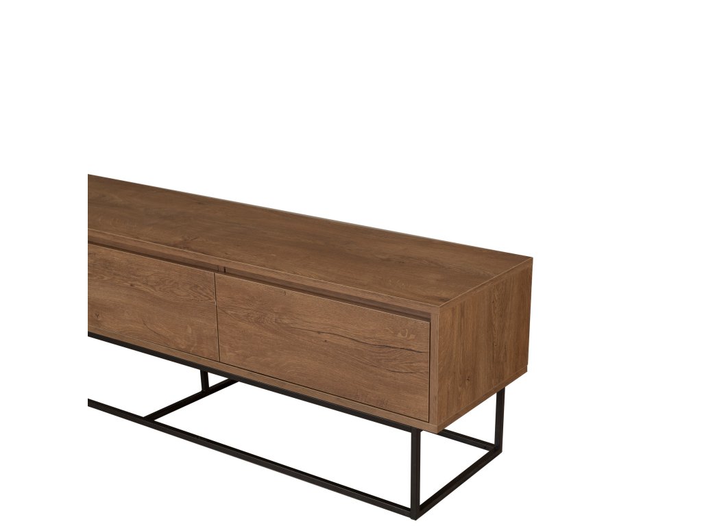 TV stolík JAY prináša dokonalú kombináciu moderného dizajnu a funkčnosti. S dekorom orecha a čiernymi kovovými prvkami sa tento široký stolík stane nielen praktickým, ale aj štýlovým prvkom vašej obývačky.