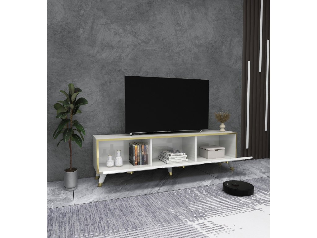 TV stolík na nožičkách MONTANA, biela/zlatá
