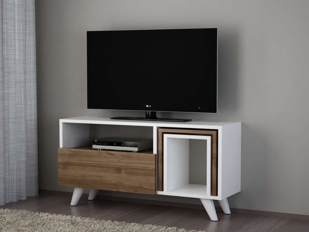 TV stolík na nožičkách NOVEL K2, biela/orech