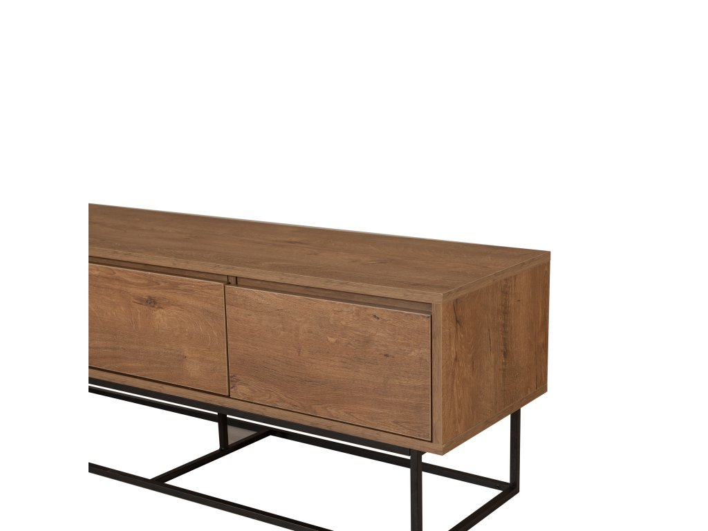 TV stolík PATRIOTE je ideálnym riešením pre moderné obývacie izby. Vďaka dekoru orecha v kombinácii s čiernymi kovovými detailmi ponúka štýlový industriálny dizajn, ktorý sa hodí do každého moderného interiéru.