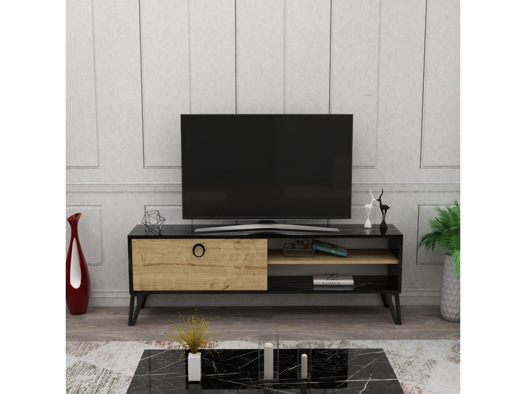 TV stolík na nožičkách PERTH, dub/čierna