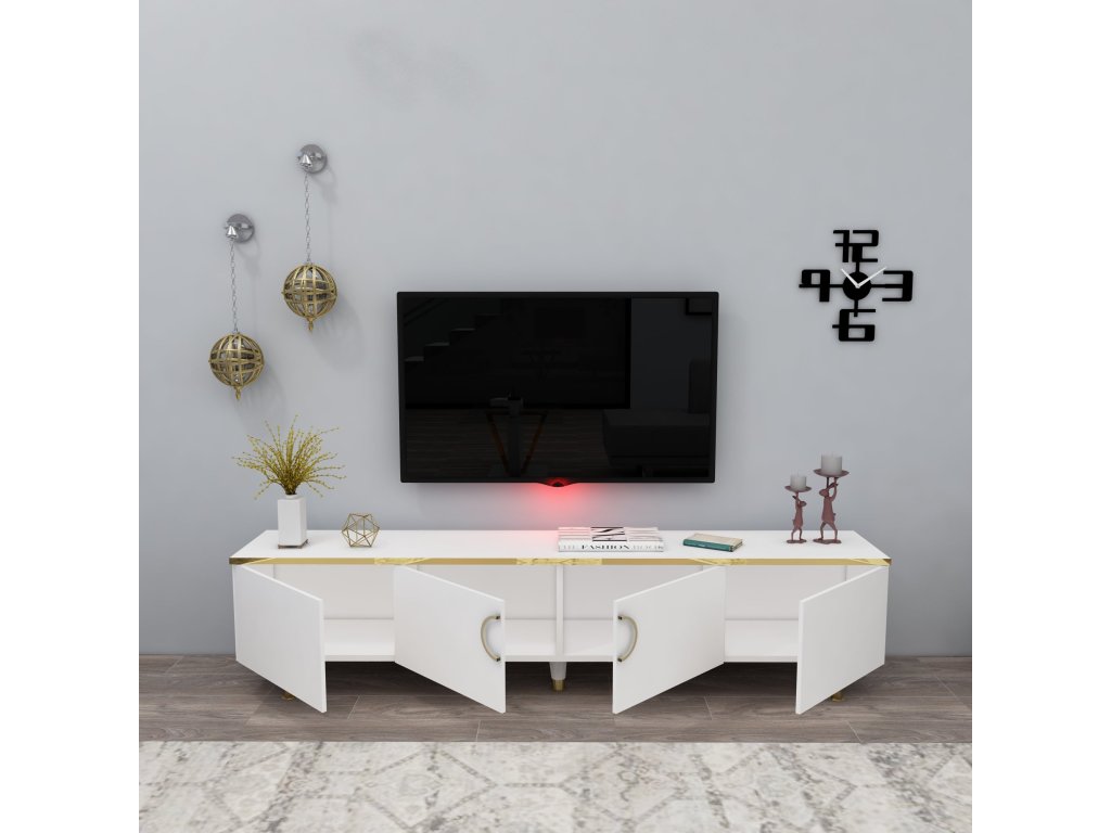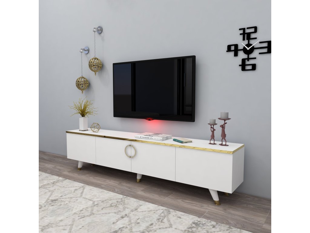 TV stolík na nožičkách PULA, biela/zlatá