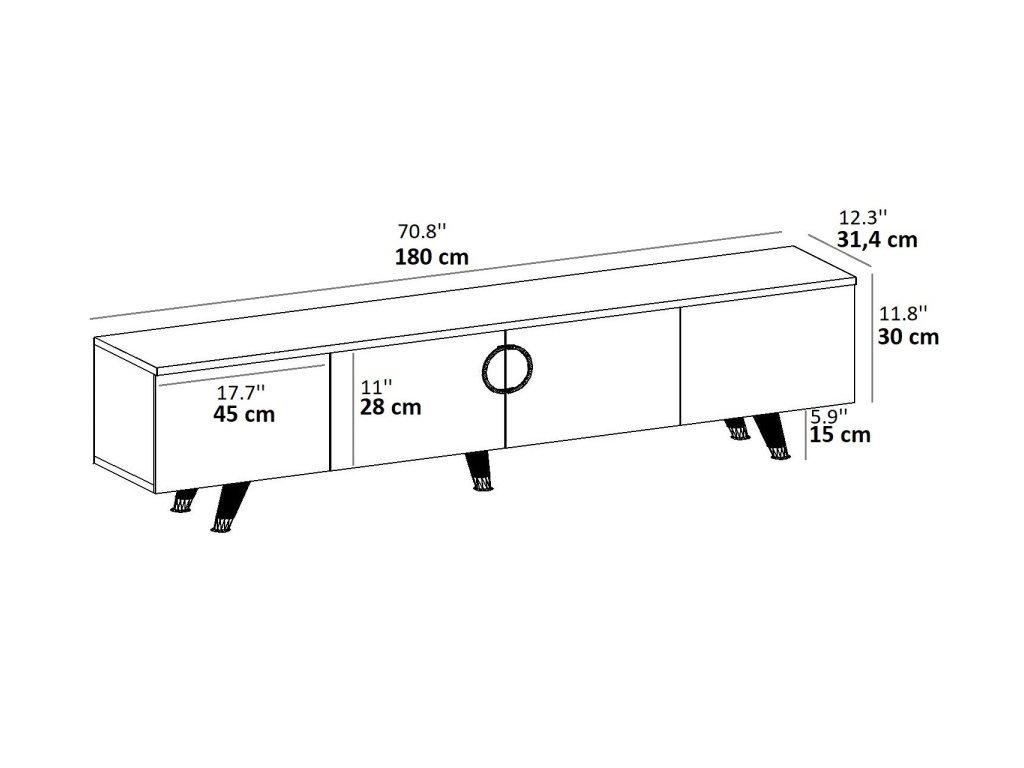 TV stolík PULA je ideálnou voľbou pre tých, ktorí hľadajú štýlový a funkčný nábytok do obývacej izby. Vďaka svojmu širokému vzhľadu a štyrom plným dvierkam poskytuje dostatok úložného priestoru pre elektroniku, káble aj ďalšie nevyhnutnosti. Jeho moderný a luxusný dizajn dodá vášmu interiéru eleganciu a sofistikovanosť.