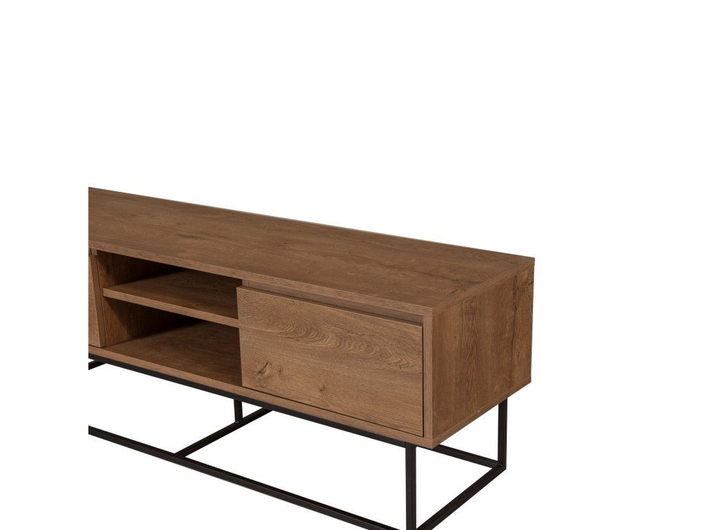 TV stolík TATE spája funkčnosť s moderným industriálnym dizajnom. Dekor orechu v kombinácii s čiernymi kovovými prvkami z neho robí elegantný a praktický nábytok, ktorý skvele doplní vašu obývaciu izbu.