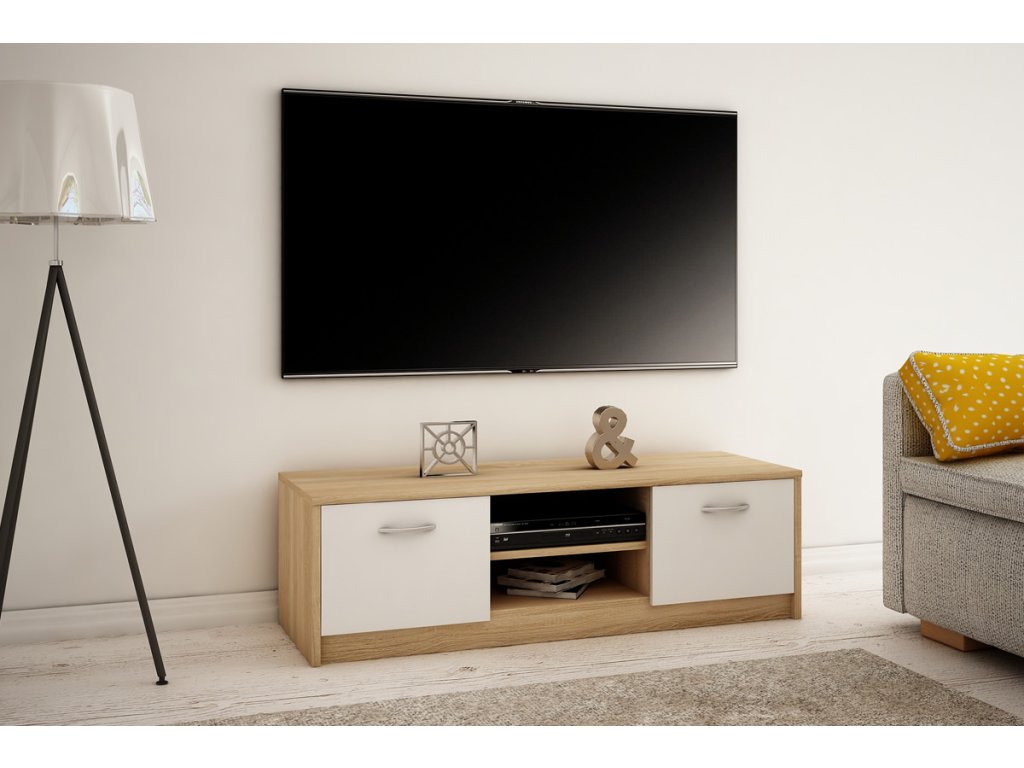 TV stolík s dvierkami a policami MAREK 027, dub sonoma/biela