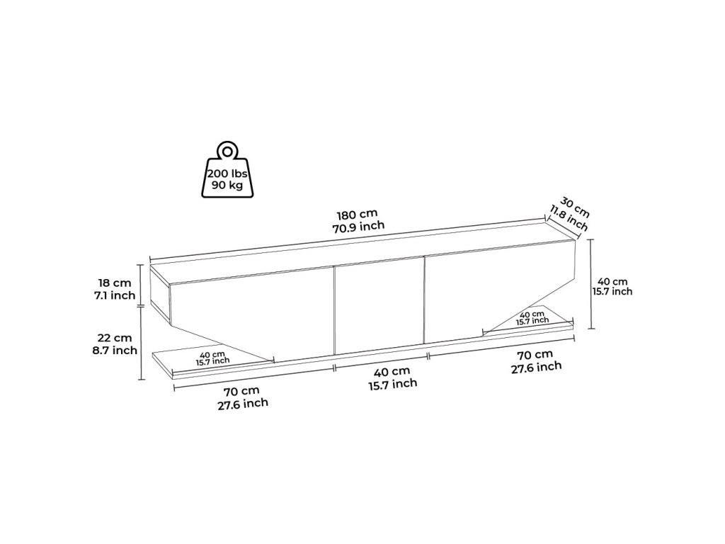 - Rozmer: 40 x 180 x 30 cm