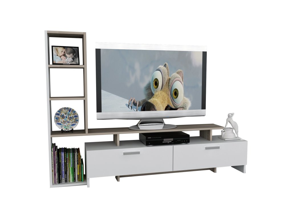 TV stolík s regálom HURRY, biela / dub Cordoba