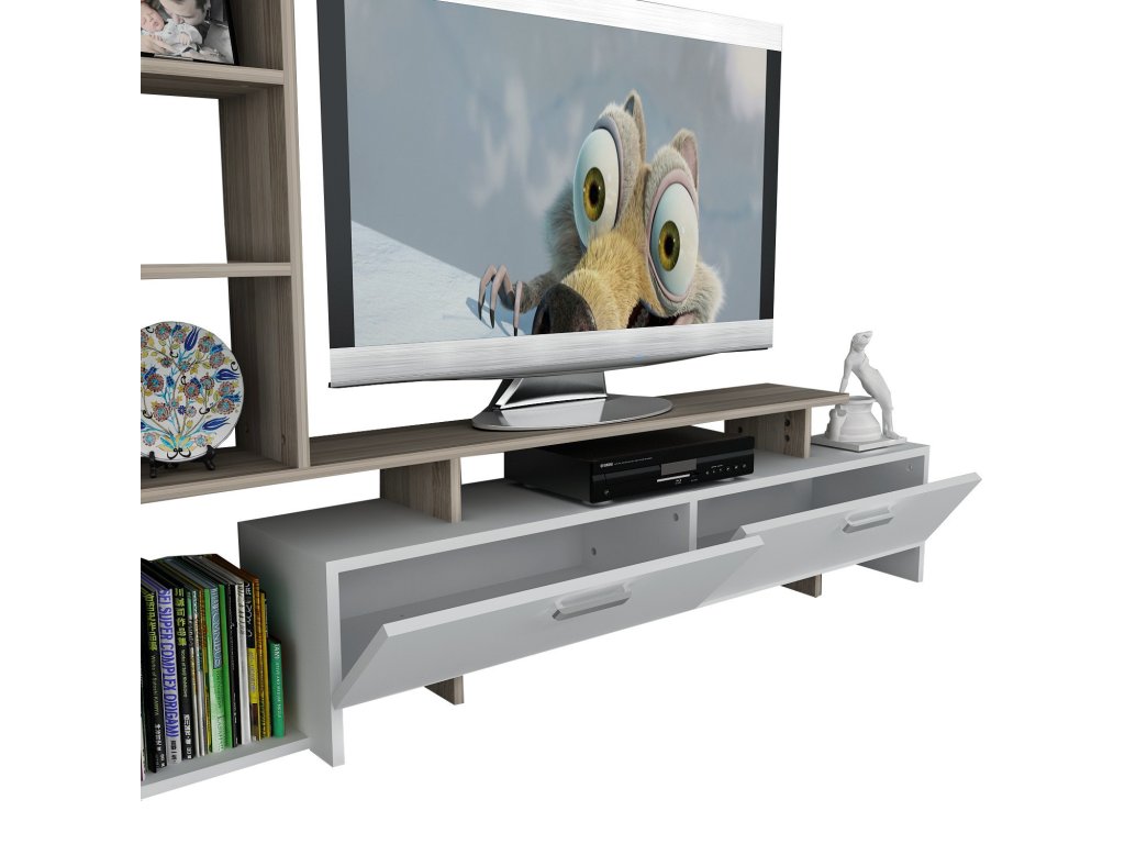 Táto televízna skrinka sa vyznačuje elegantným a moderným dizajnom a bezproblémovo zapadne do akéhokoľvek interiéru. Kombinácia bielej a farby Cordoba dodá vášmu obývaciemu priestoru nádych sofistikovanosti. Vďaka početným policám a ďalšej komode budete mať dostatok priestoru na usporiadanie mediálnych zariadení, kníh a dekoratívnych predmetov.