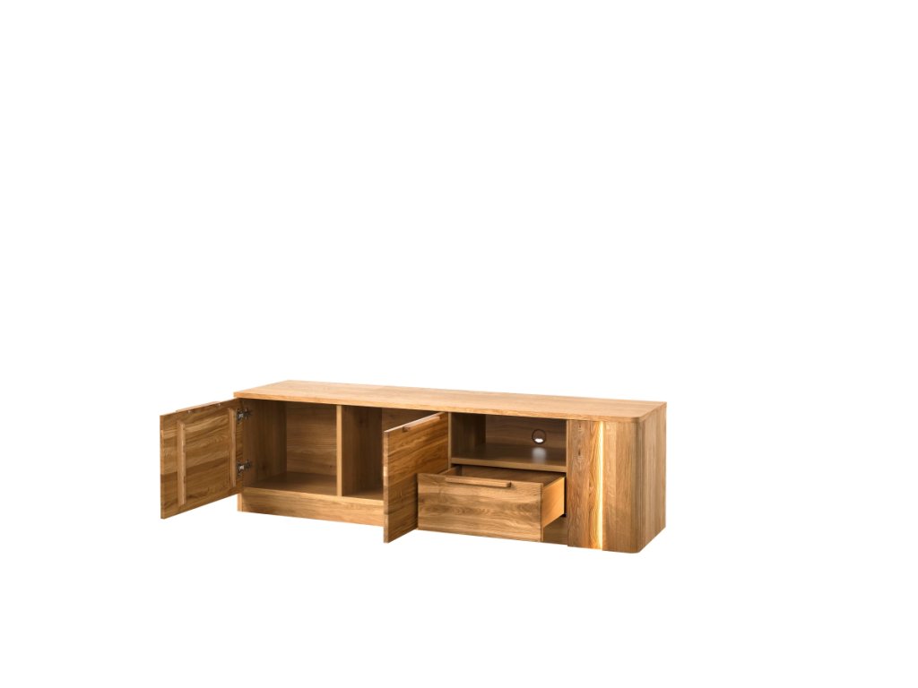 Luxusný nábytok DON LEON je v jedinečnom a štýlovom prevedení. Nábytok je vyrobený z prírodného masívu dubového dreva o hrúbke 22 mm. Celý povrch nábytku je imgregnovaný prírodným olejom. Vonkajšia strana korpusu je vyrobená z kvalitnej dubovej dýhy, hrúbka je 22 mm. Pánty sú vybavené systémom tichého zatvárania. Nábytok bude jedinečným prvkom do vašej obývačky