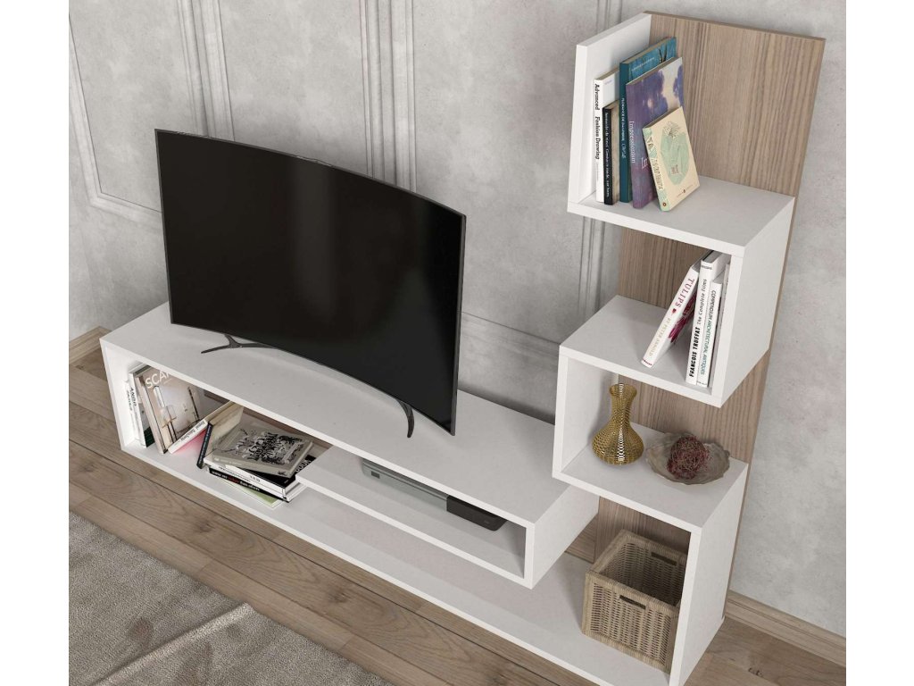 - Vybavenie: Odkladacie police, ktoré poskytujú dostatok priestoru na umiestnenie multimediálnych zariadení, kníh alebo dekorácií.