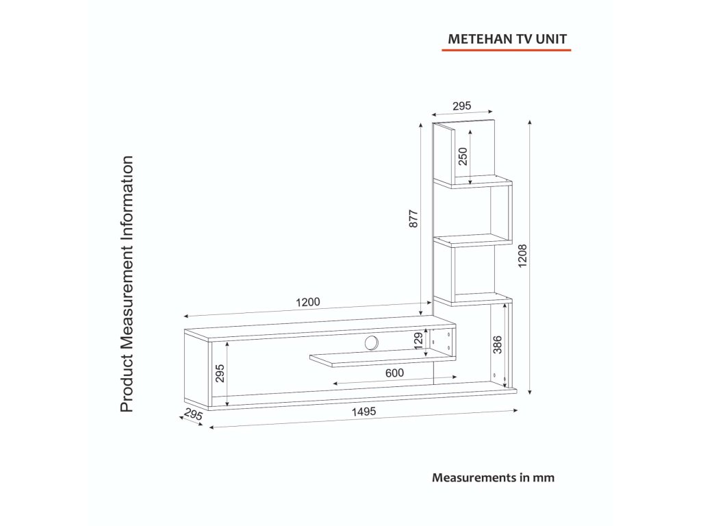 - Rozmery: Celkové rozmery 120.8 x 149.5 x 29.5 cm s výškou miesta pre TV 33.1 cm a šírkou 120 cm, perfektne pasujúce pre 55 palcové televízory.