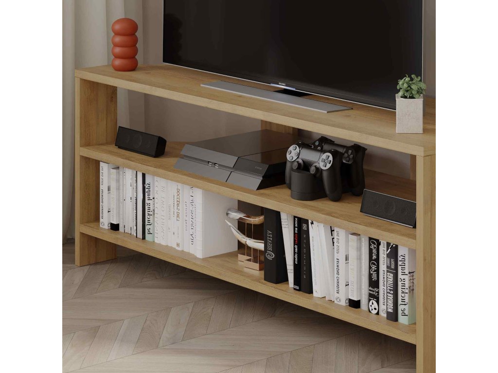 VICIUS TV stolík nie je iba pohľadovo atraktívny, ale tiež ponúka organizačné riešenie, vďaka ktorému bude váš relaxačný čas ešte príjemnejší. Jeho elegantný dizajn vo farbe duba obohatí každý interiér a dodá vašej obývačke príjemnú atmosféru.