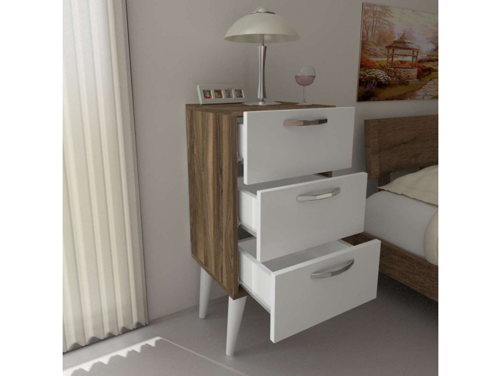 Komoda FELLINY 3D je vyrobená z kvalitného LTD materiálu s hrúbkou 18 mm, čo zaisťuje jej dlhú životnosť a odolnosť. Elegantná kombinácia bielej farby a orecha prinesie do vášho interiéru moderný a štýlový vzhľad. S rozmermi 40 x 80 x 37.1 cm a tromi praktickými zásuvkami ponúka dostatok úložného priestoru, pričom jej úzky dizajn je ideálny pre menšie priestory.