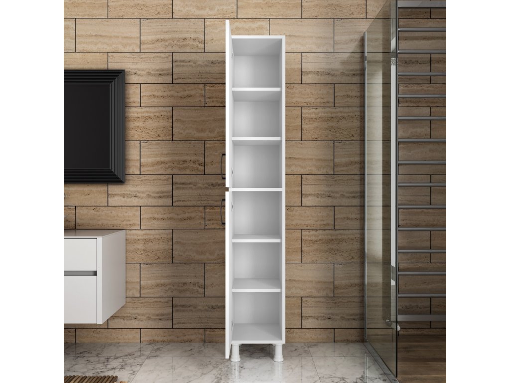 Policová skriňa KAKI – úzka a vysoká elegancia pre vašu kuchyňu aj kúpeľňu