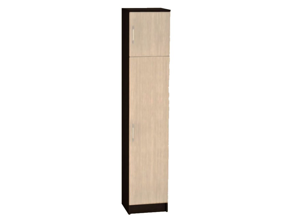 Úzka skriňa vhodná na predsieni MÁŠE (viď. Príslušenstvo). Vnútri sa nachádzajú police. Korpus je vo farebnom odtieni wenge, predné časti majú farbu dub mliečny.