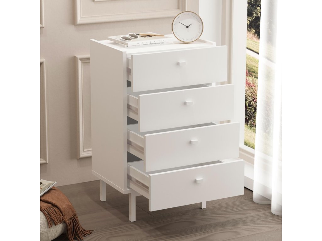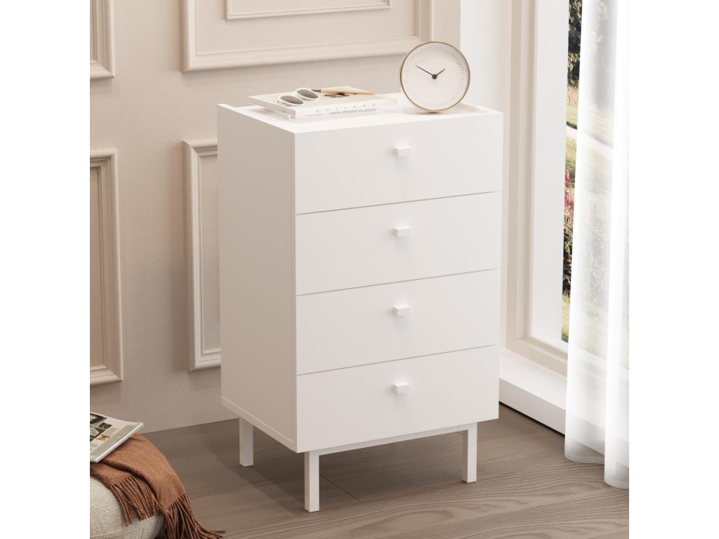 Úzka šuplíková komoda 4S BURN, biela