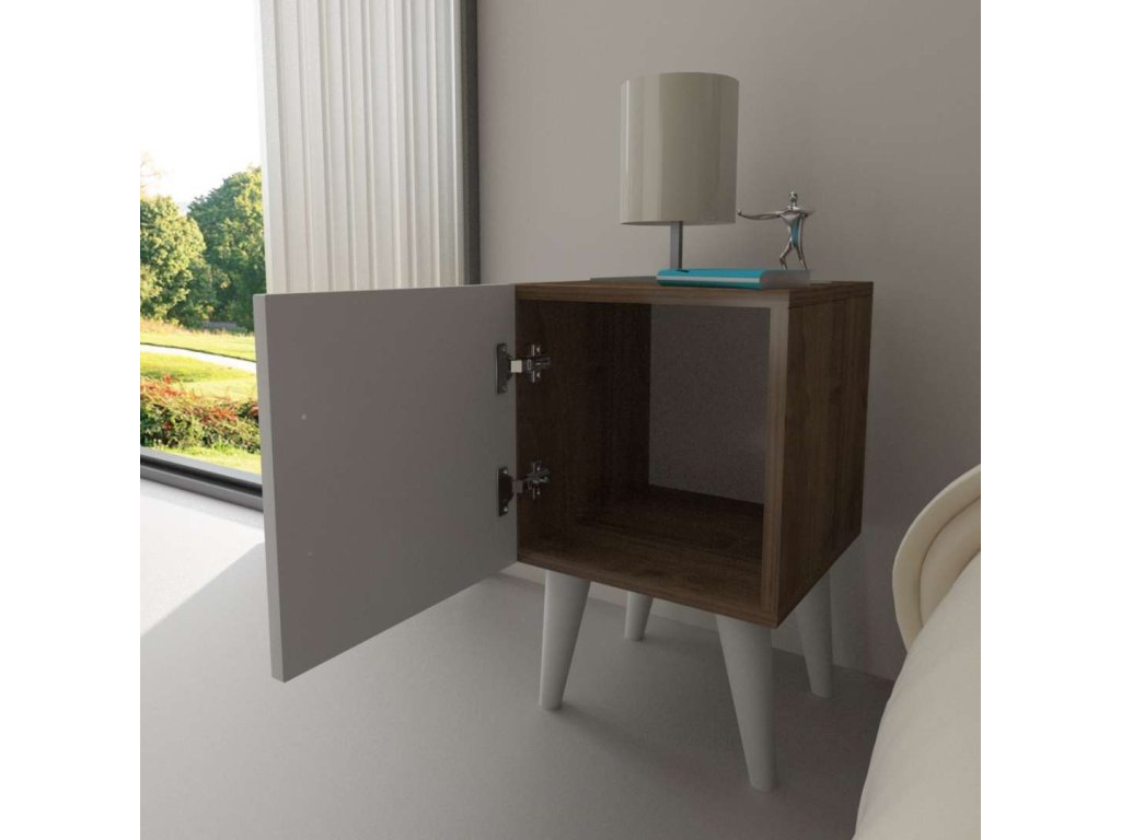 Nočný stolík FELLINY 1D sa vyznačuje elegantným prevedením v kombinácii bielej a orechovej farby, ktorá prináša moderný a prírodný vzhľad do vášho domova. Vďaka úzkemu dizajnu a jednej skrinke poskytuje tento stolík dostatok úložného priestoru pre vaše veci bez toho, aby zaberal veľa miesta.