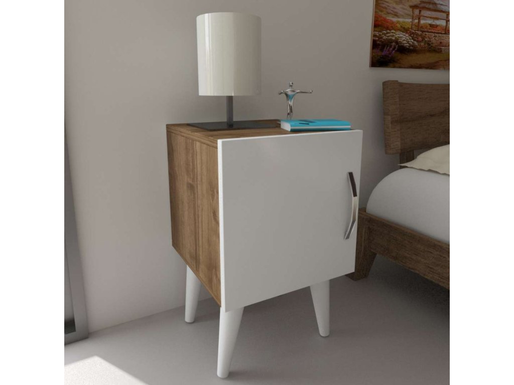Úzky nočný stolík FELLINY 1D, biela/orech