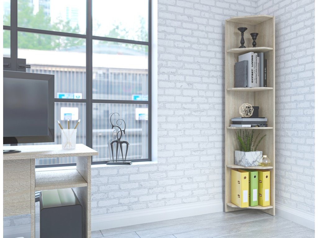 Úzky rohový regál MADAL 3, dub sonoma