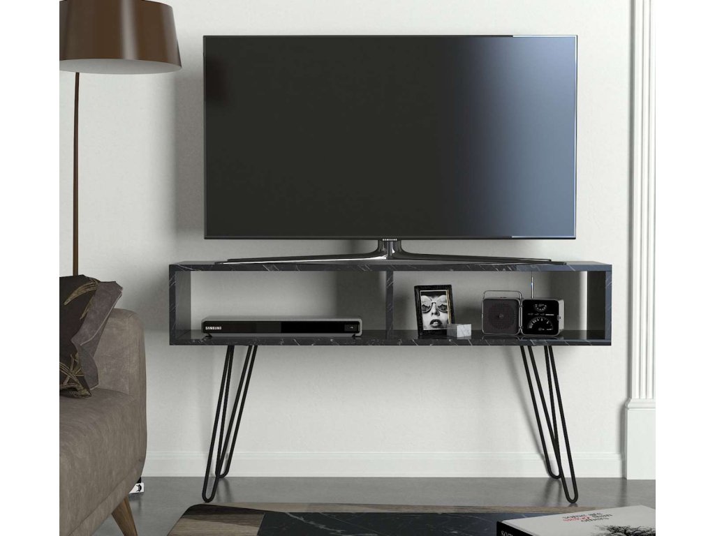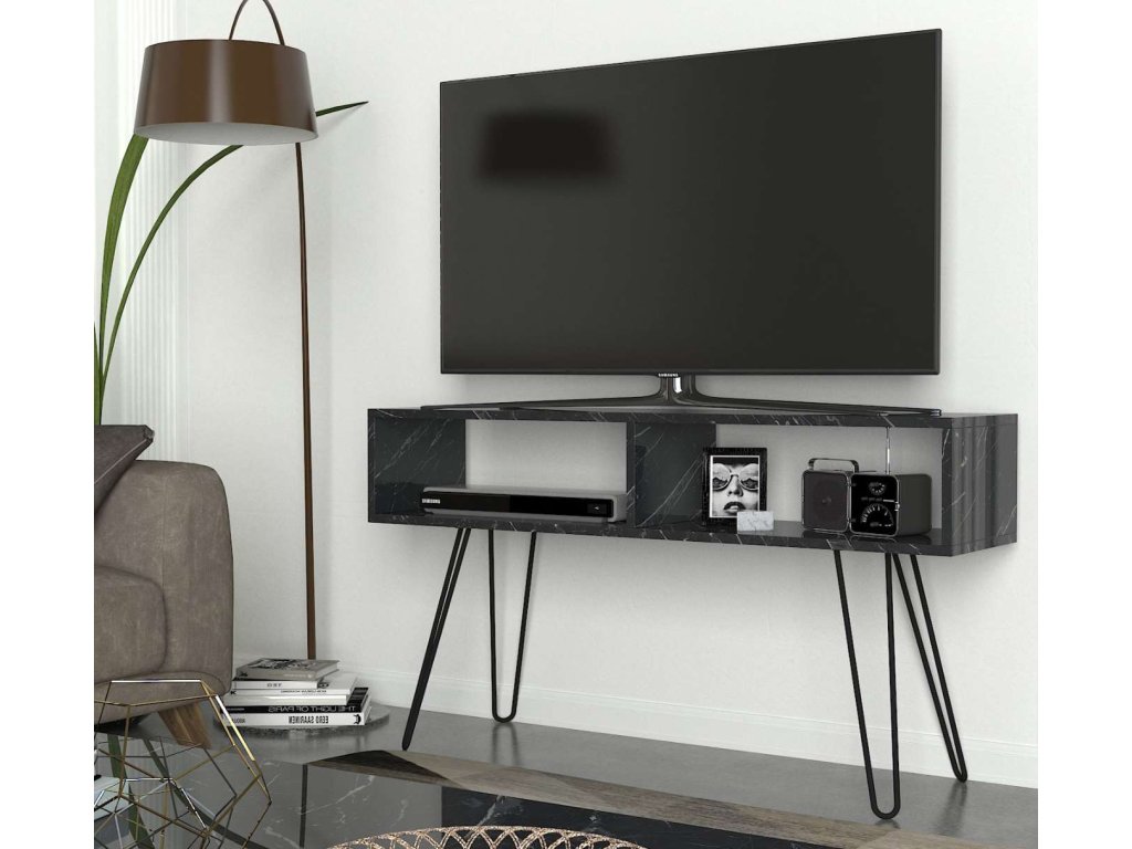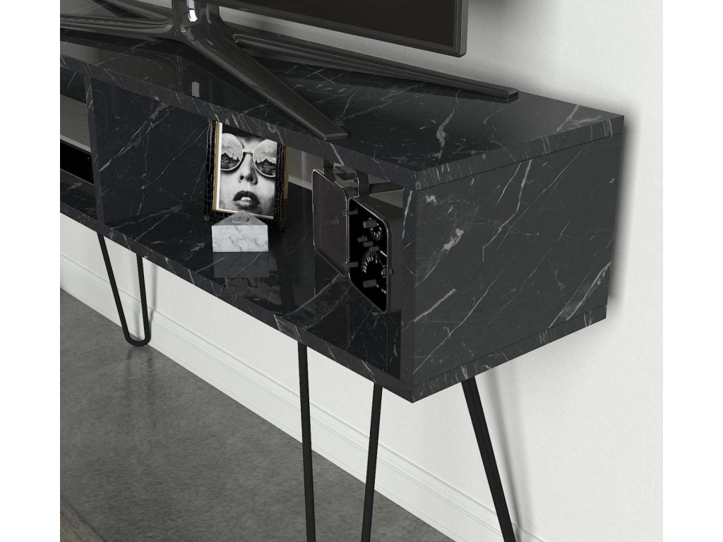 TV stolík ALINA je perfektnou voľbou pre tých, ktorí hľadajú moderný a funkčný nábytok s elegantným vzhľadom. Jeho kombinácia čiernej a mramorového designu prináša do vášho domova sofistikovaný štýl a praktickosť.