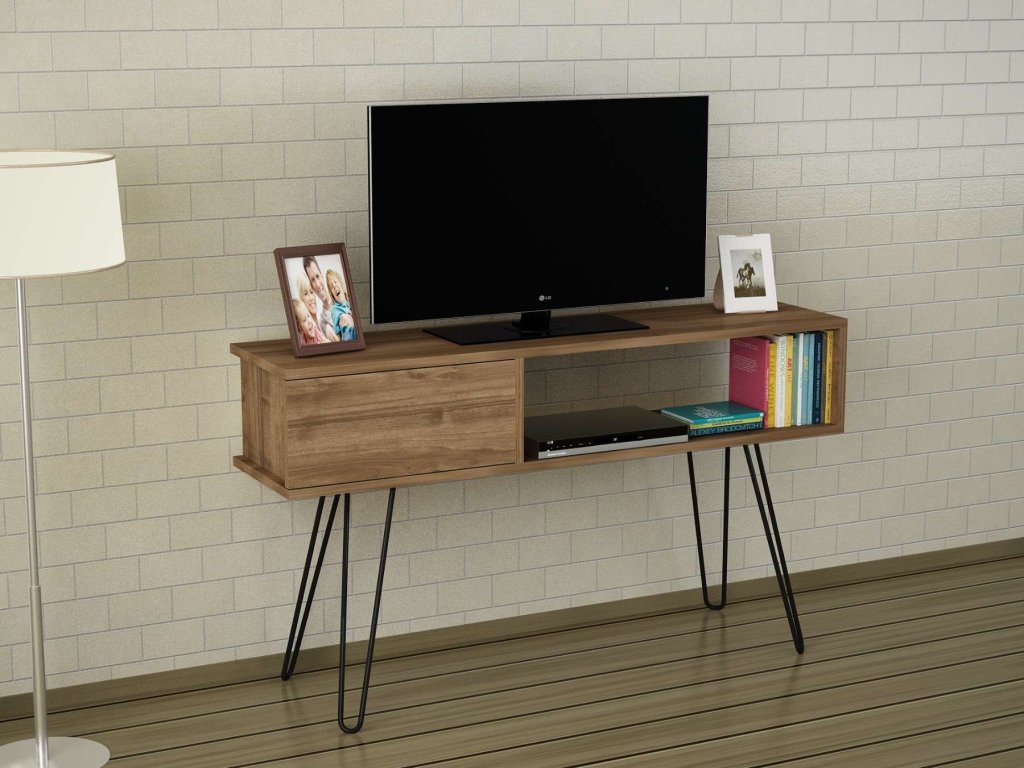TV stolík DARA je skvelou voľbou pre tých, ktorí hľadajú moderný a funkčný nábytok s elegantným vzhľadom. Jeho orechová farba a minimalistický dizajn prinášajú do vášho domova teplo a moderný štýl.