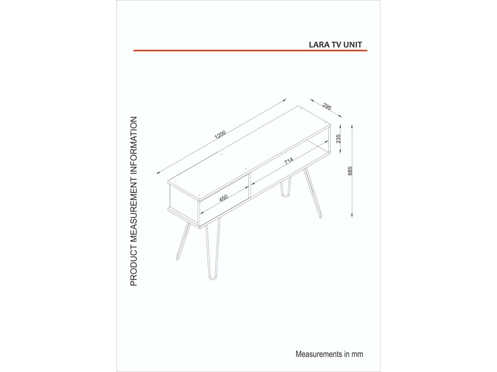 - Rozmery: 120 x 68.5 x 29.5 cm, ideálny pre moderné a kompaktné obývacie priestory.