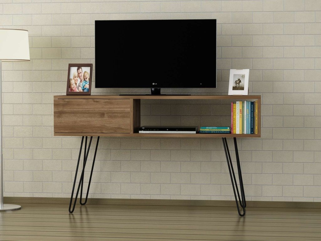 - Vybavenie: Regálka poskytuje praktický úložný priestor pre elektroniku, knihy alebo dekorácie.