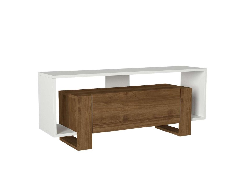 Predstavujeme MARRY, úzky TV stolík, ktorý elegantne kombinuje bielu a orechovú farbu, prinášajúcu do vašej obývačky sofistikovaný a teplý vzhľad. Tento moderný kus nábytku je navrhnutý tak, aby poskytol účinné riešenie na usporiadanie vašej elektroniky a zároveň dodal priestoru nádych škandinávskeho štýlu.