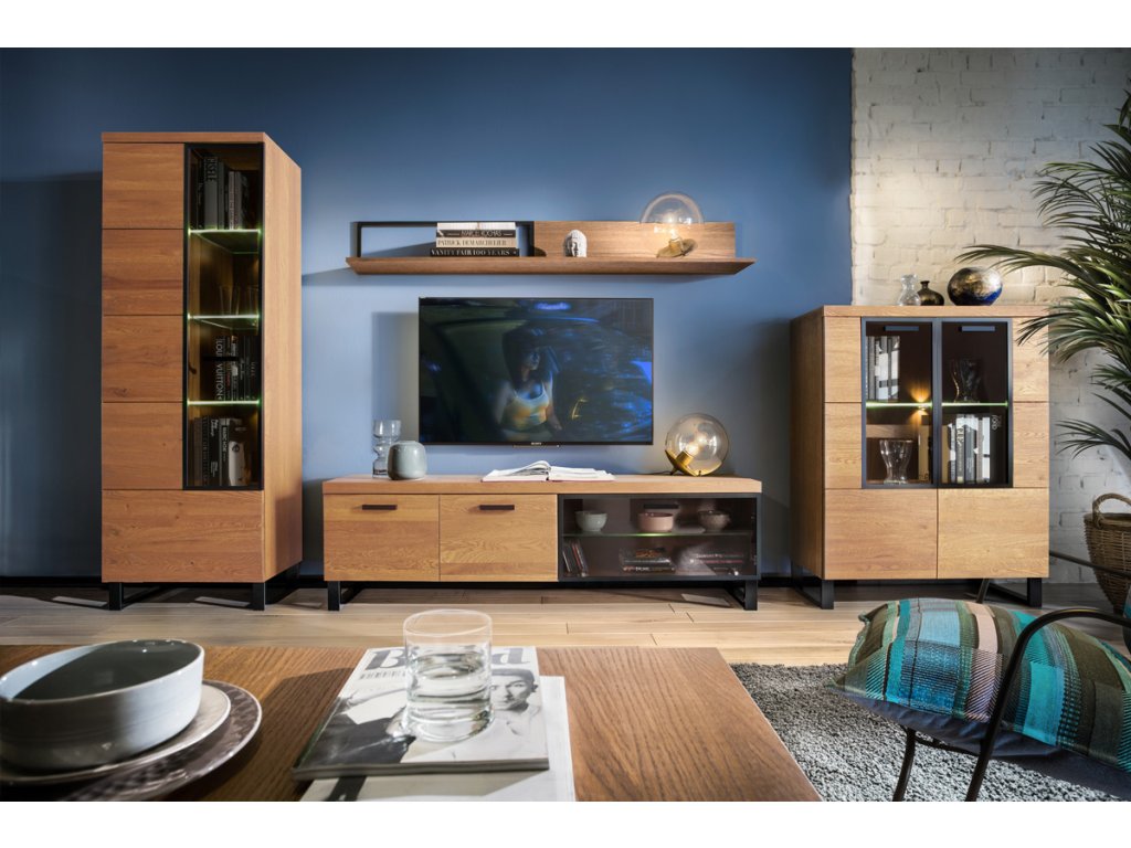| Zostava obsahuje: | Vitrína 67 x 198 x 42, vitrína 96 x 142 x 42, TV stolík 180 x 53 x 42, závesná polica 180 x 25 x 26 cm. |