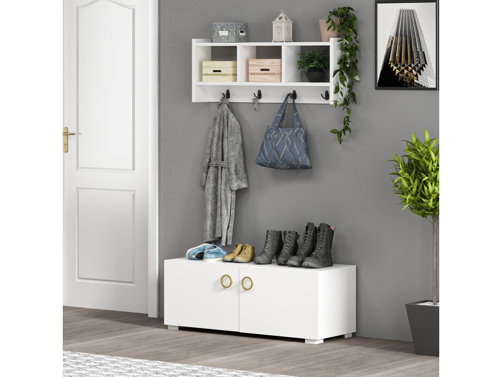 Polica DALAMON prináša do vášho domova čistý a funkčný škandinávsky dizajn. Je ideálnym doplnkom do predsiene alebo obývačky, kde poskytuje praktický odkladací priestor pre rôzne drobnosti, dekorácie alebo knihy.