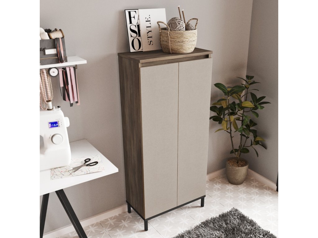 Komoda je vytvorená z kvalitných materiálov, ako je LTD drevo a kov, spolu s melamínovým povrchom pre dlhotrvajúcu odolnosť a krásu. Dizajn zahŕňa kombináciu hnedých a čiernych tónov, čím dodáva VERA 2 sofistikovaný vzhľad, ktorý osvieži akýkoľvek interiér.