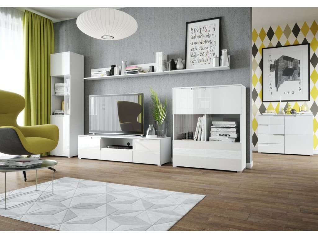 Vitrína 25 CELENE, biela/biely lesk