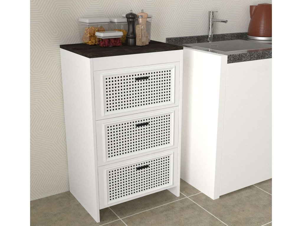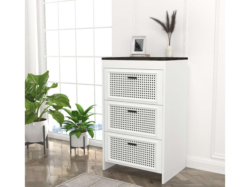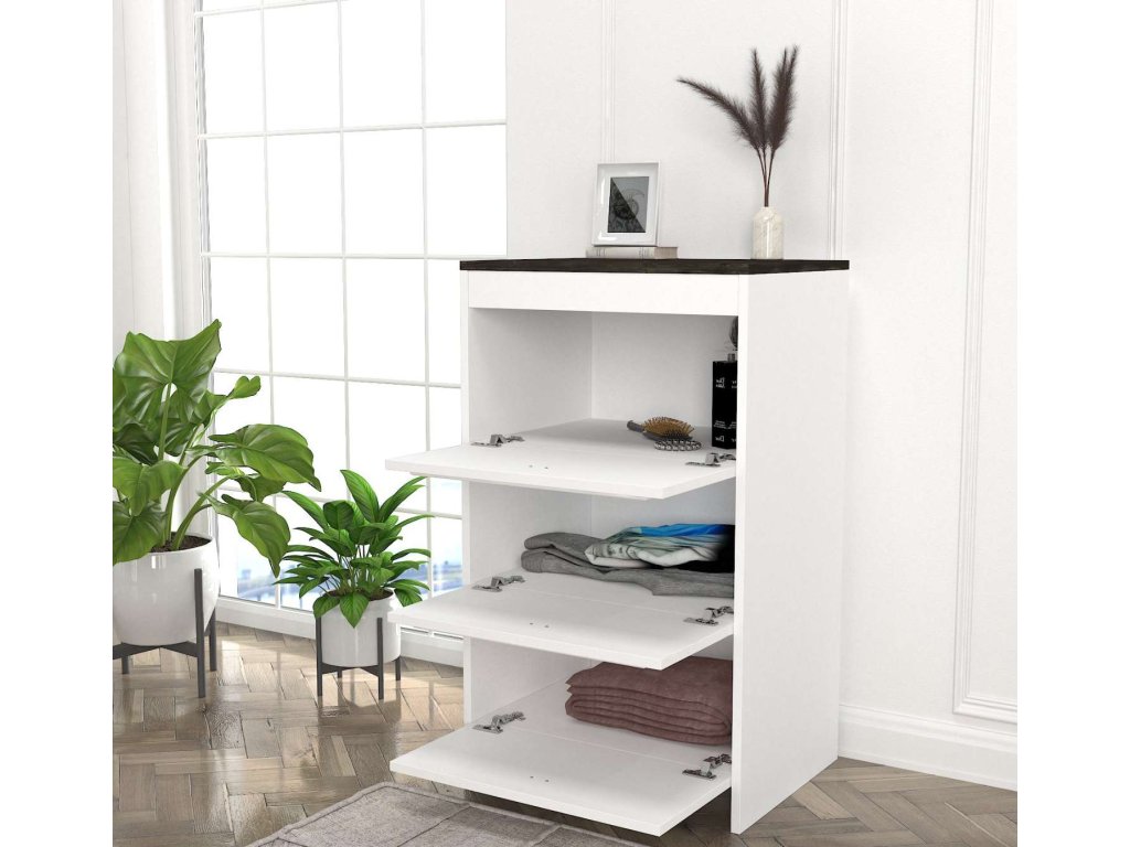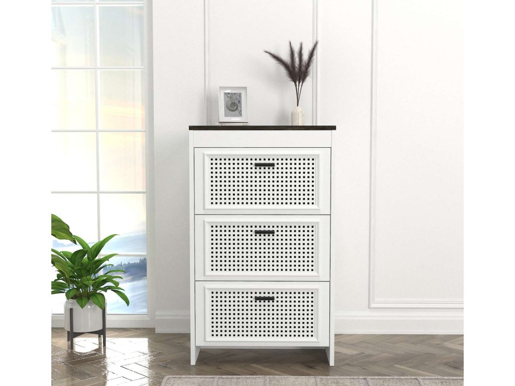 Komoda CANCEL sa pýši elegantnou kombináciou bielej a tmavo hnedej farby, ktorá dodáva nábytku sofistikovaný a zároveň exotický vzhľad. Vďaka trom skrinkám ponúka dostatok úložného priestoru pre všetky vaše veci. Orientálny štýl a vysoký vzhľad tejto komody dodajú vášmu interiéru jedinečný šarm a eleganciu.