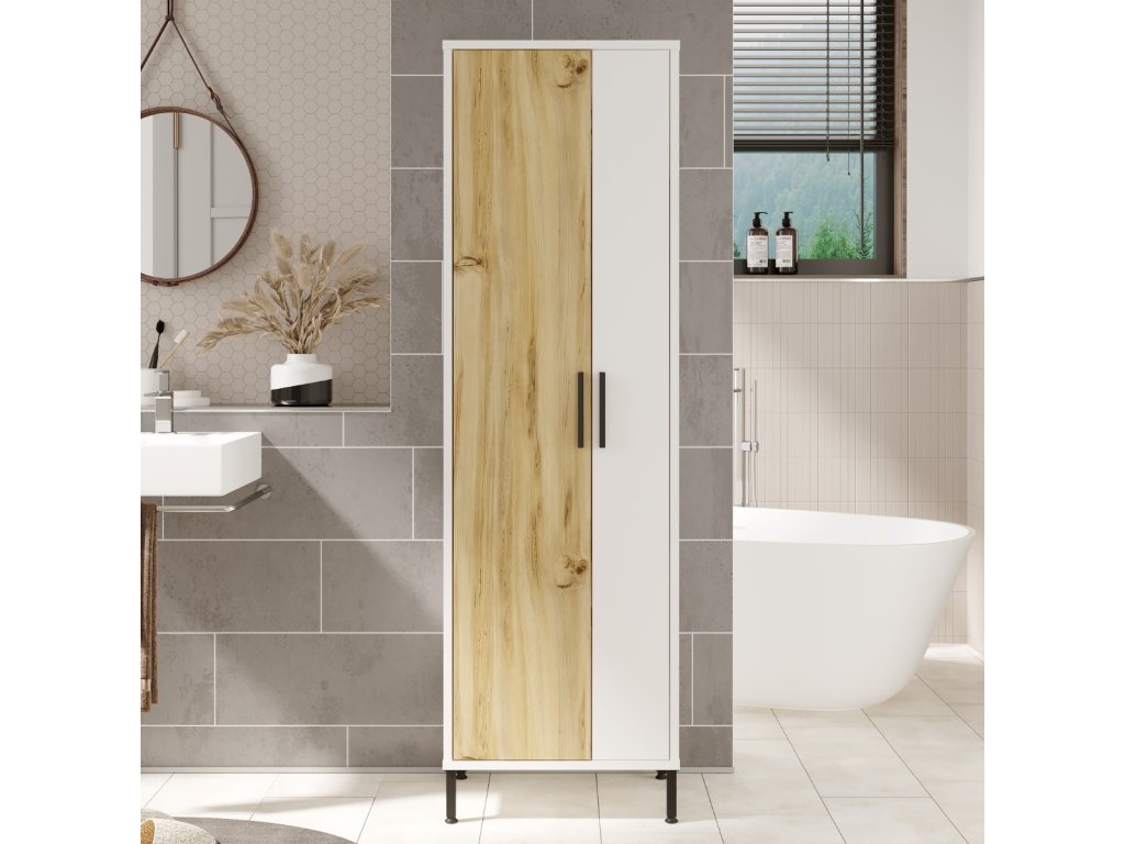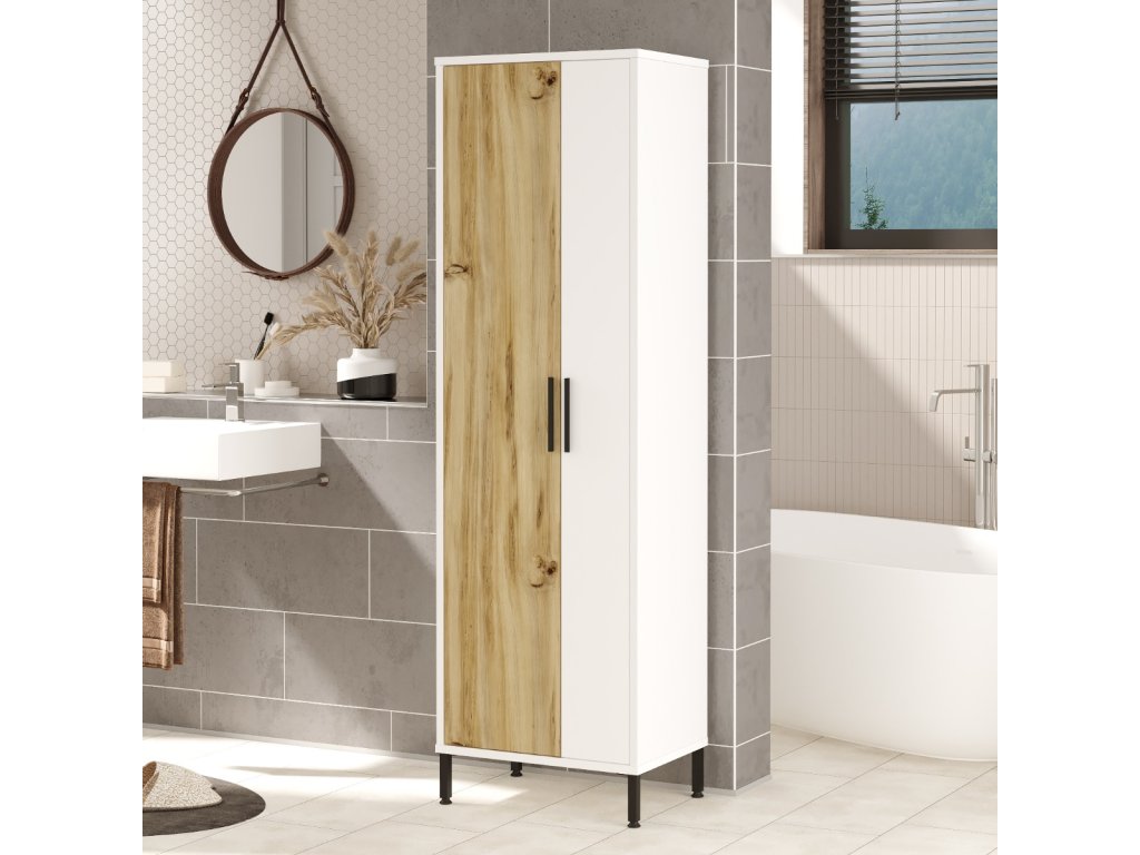 Vysoká policová skriňa DYLAN 1, dub Left / biela