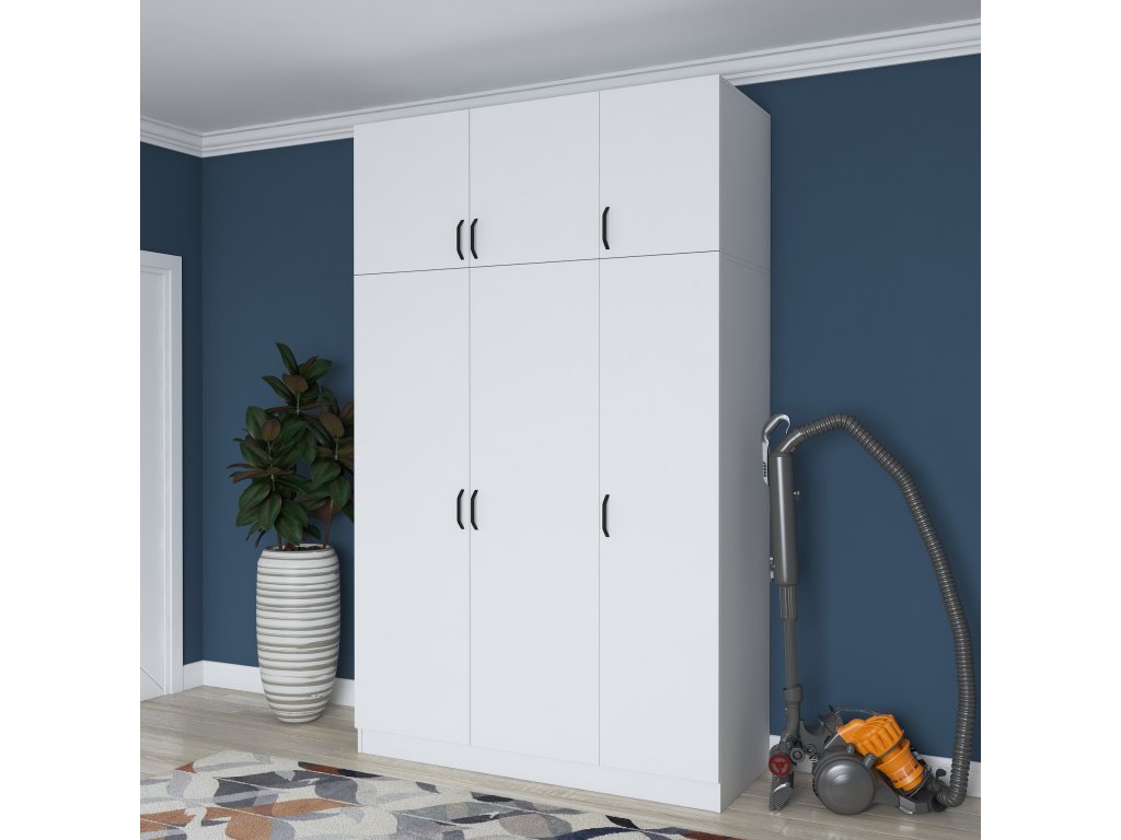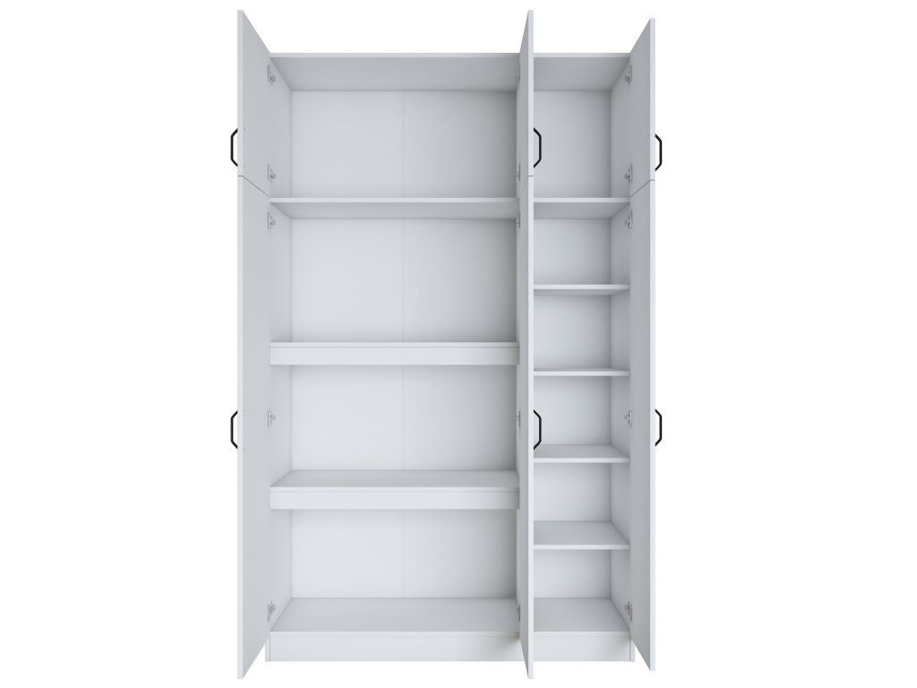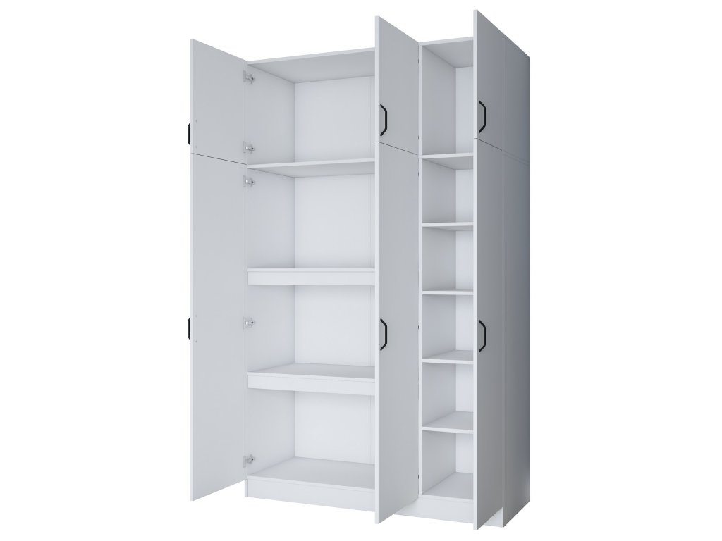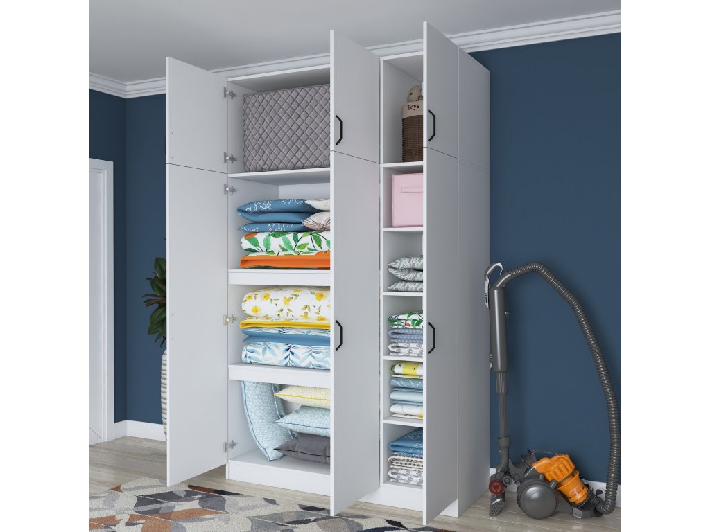 Šatníková skriňa REMOTE je navrhnutá pre efektívnu organizáciu oblečenia a doplnkov. Obsahuje šesť dverí, za ktorými sa ukrýva šesť priestranných políc, ktoré umožňujú jednoduché usporiadanie odevov, posteľnej bielizne alebo iných nevyhnutností.