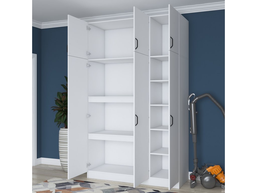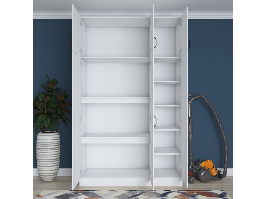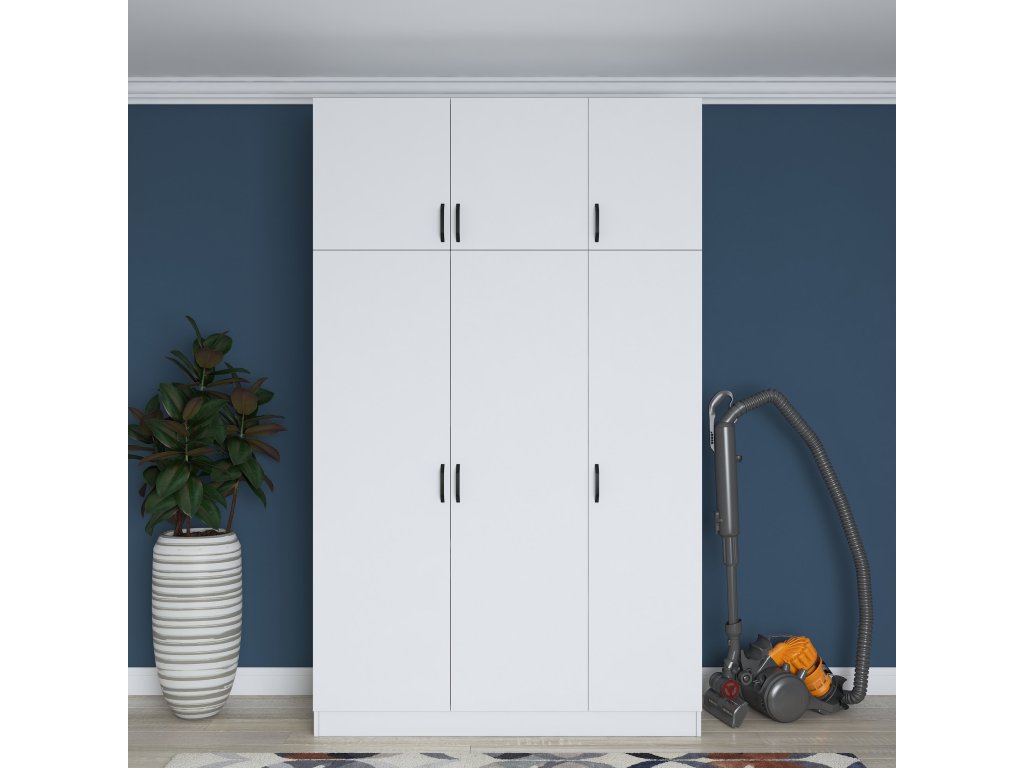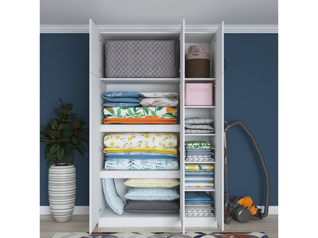 Šatníková skriňa REMOTE je navrhnutá pre efektívnu organizáciu oblečenia a doplnkov. Obsahuje šesť dverí, za ktorými sa ukrýva šesť priestranných políc, ktoré umožňujú jednoduché usporiadanie odevov, posteľnej bielizne alebo iných nevyhnutností.