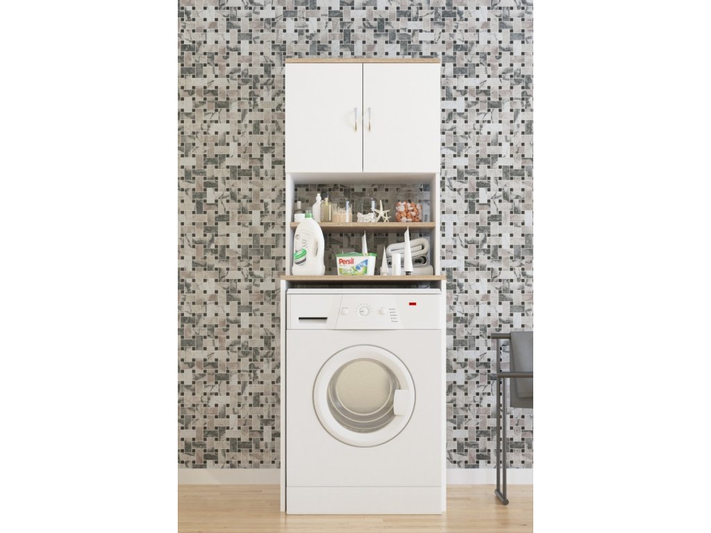 Vysoká skriňa na práčku NAMINO, biela/dub sonoma
