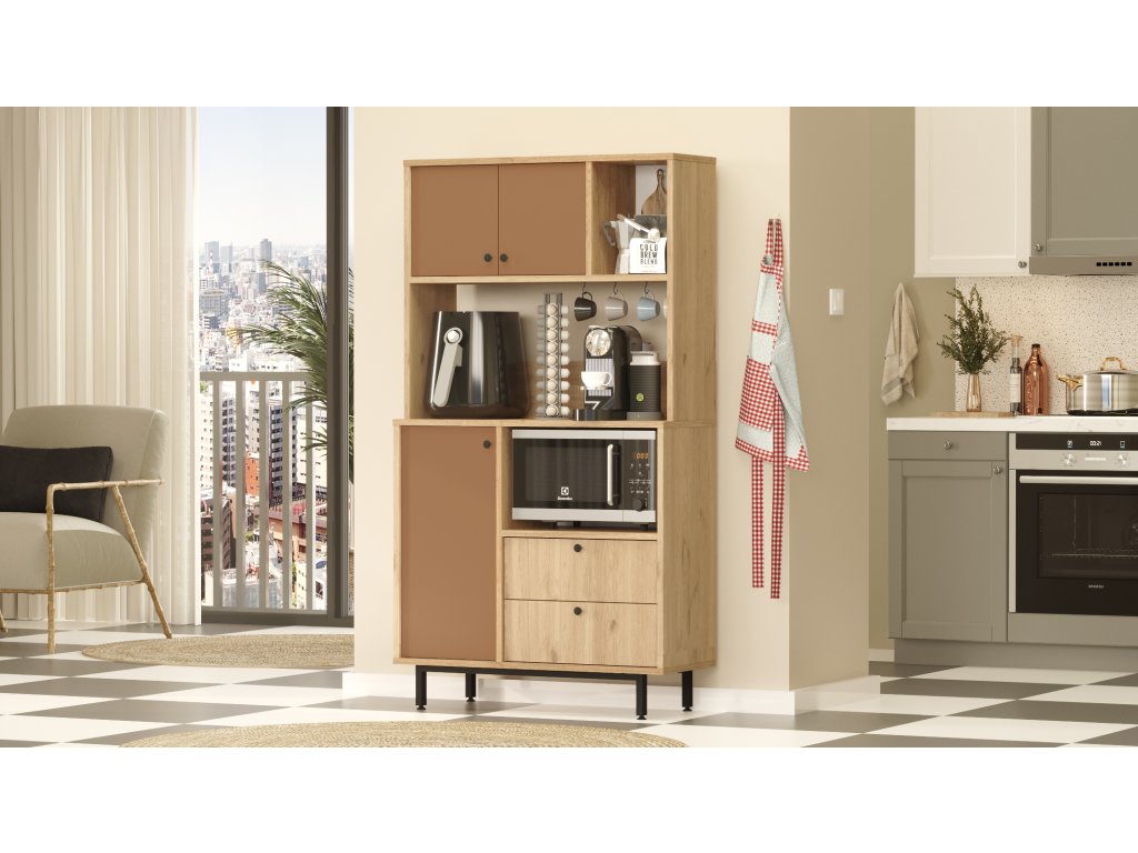 Vysoká skrinka na mikrovlnku RENDY 3, sepet/tehlová