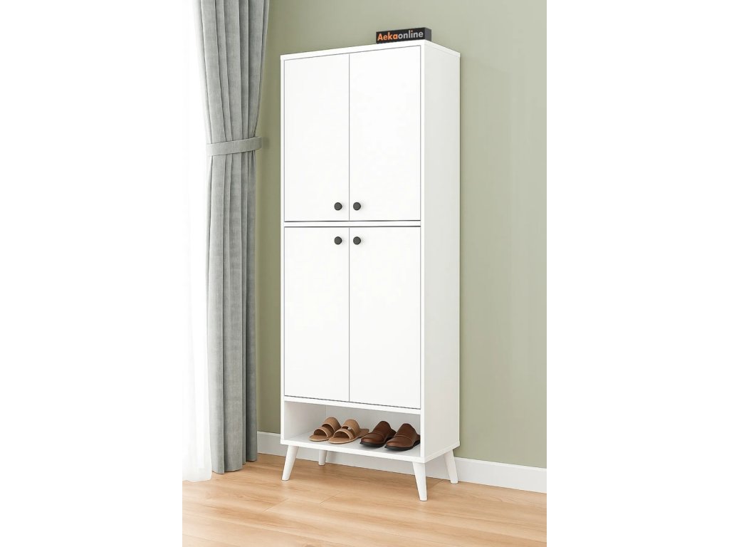 Praktická viacúčelová skriňa so 4 dverami a 8 policami, vhodná ako botník, úložná skrinka do kúpeľne, kávový kútik.