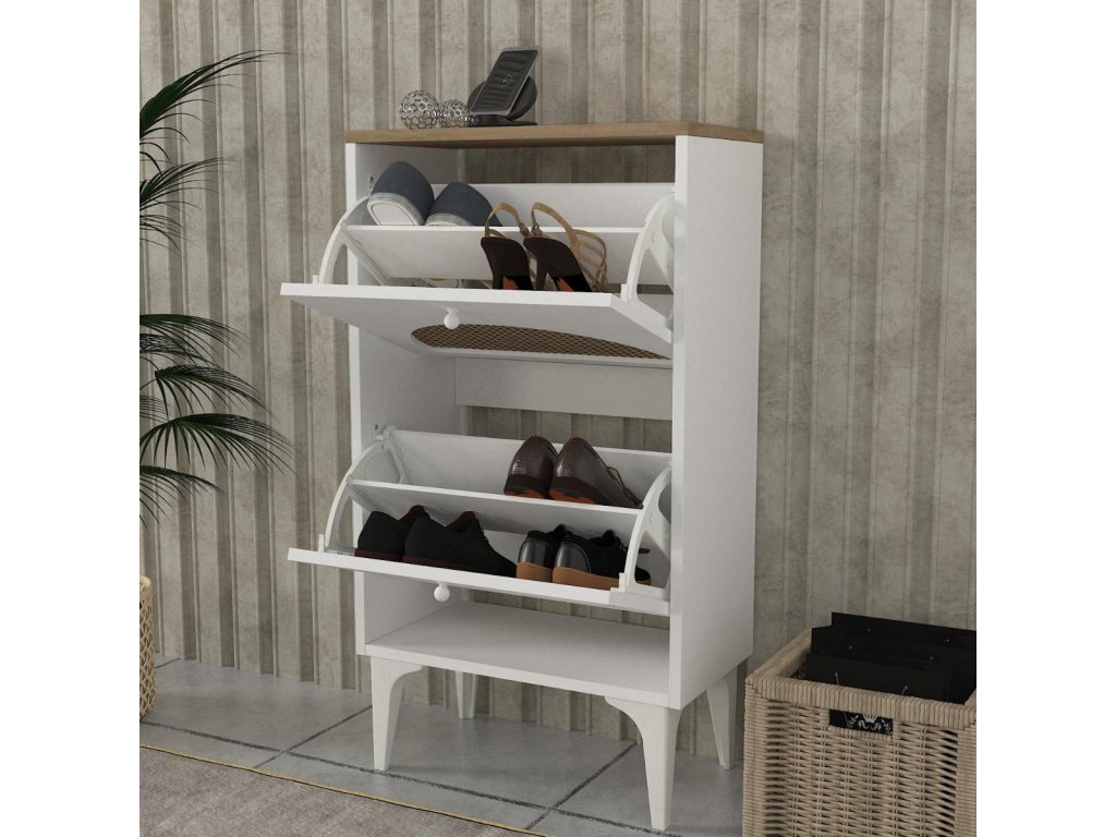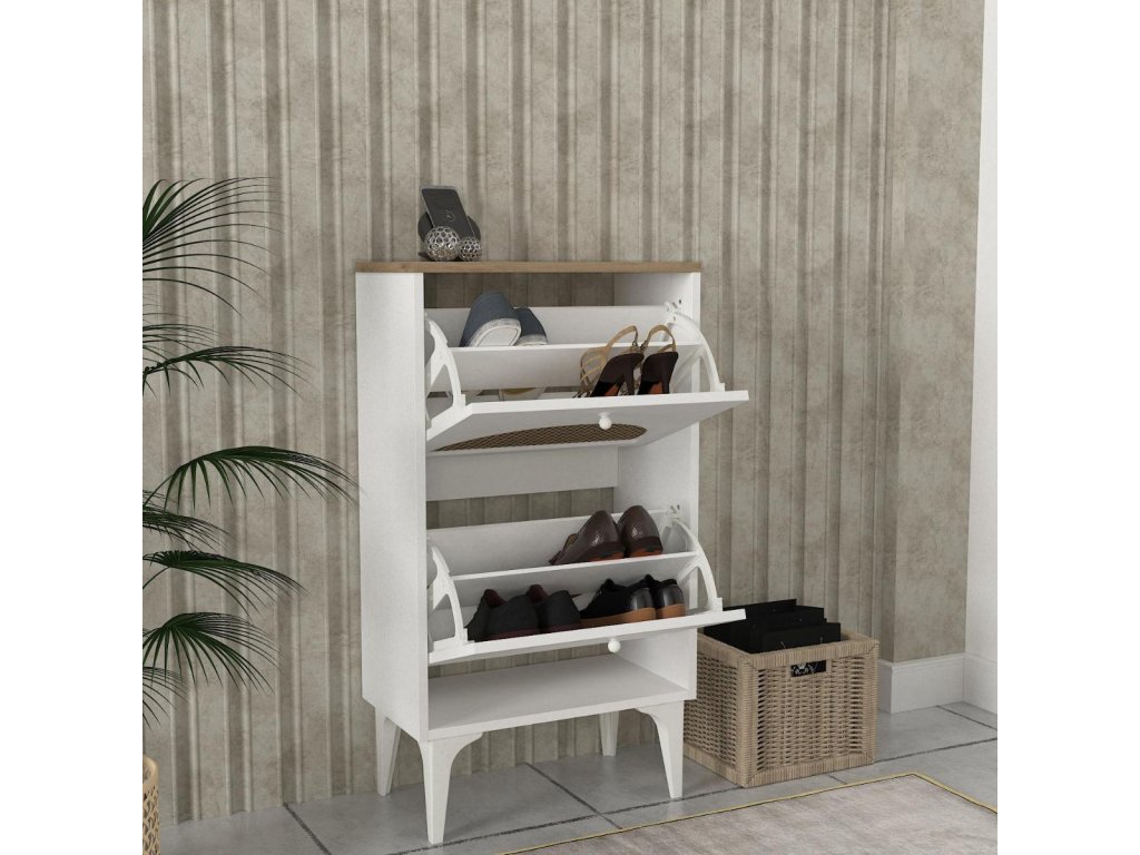 Vďaka výklopným priehradkám poskytuje botník KEBAB dostatok úložného priestoru pre vašu obuv a zároveň šetrí miesto. Dodávame v demonte, čo zaručuje bezpečnú prepravu a jednoduchú montáž. Pridajte do svojho domova tento jedinečný a praktický kúsok nábytku a užívajte si jeho výhody každý deň.