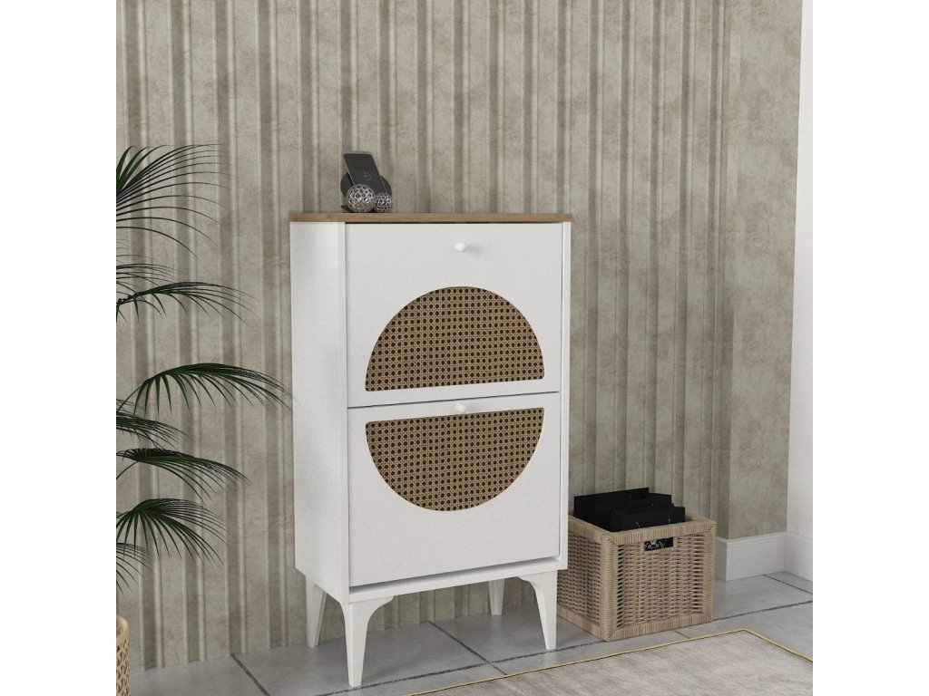 Botník KEBAB je skvelou voľbou pre každého, kto hľadá praktické a estetické riešenie pre svoju obývaciu izbu. Vyrobený z kvalitného LTD materiálu s hrúbkou 18 mm, zaisťuje pevnosť a dlhú životnosť. Kombinácia bielej a svetlo hnedej farby dodáva botníku moderný a svieži vzhľad, ktorý sa hodí do akéhokoľvek interiéru.