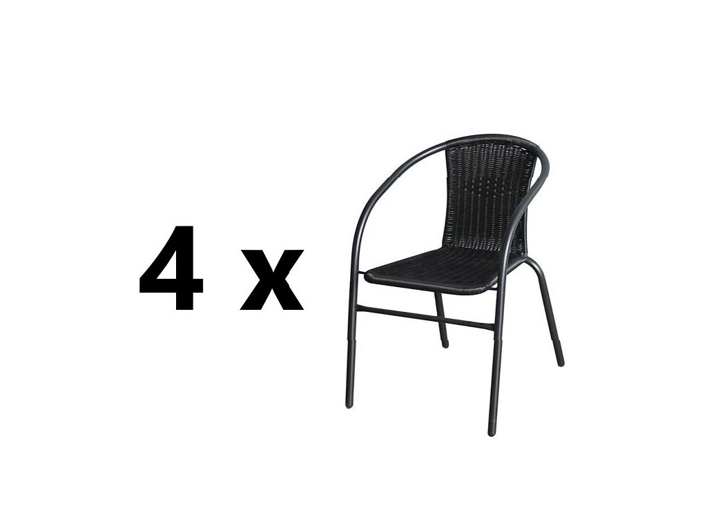 Záhradná stolička 4 ks BISTRO, čierny ratan