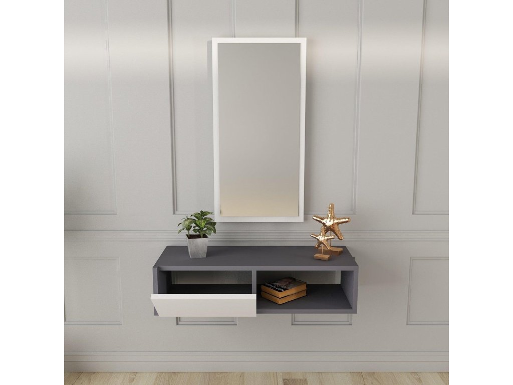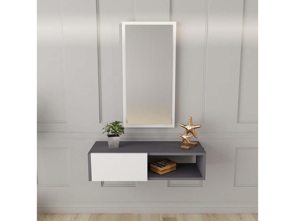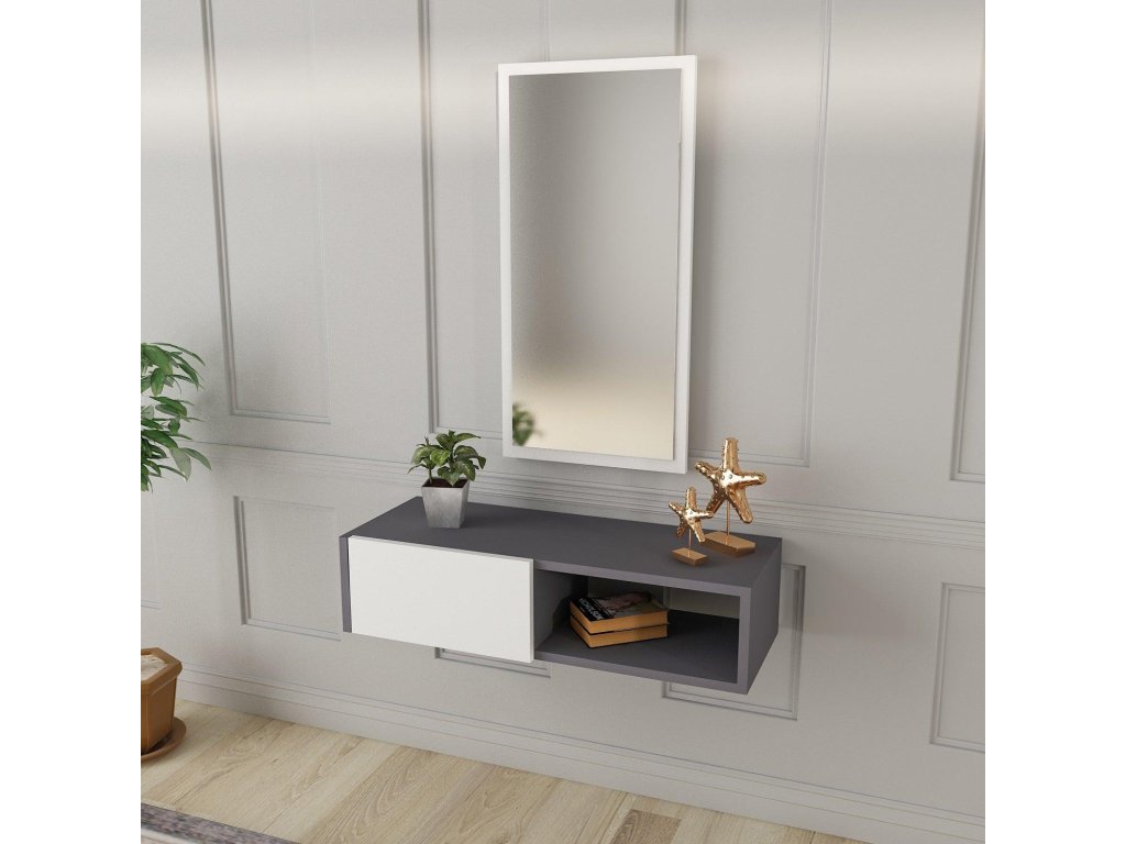 Závesná konzola so zrkadlom FARGO, antracit/biela