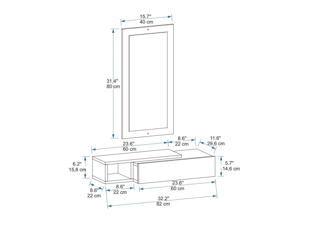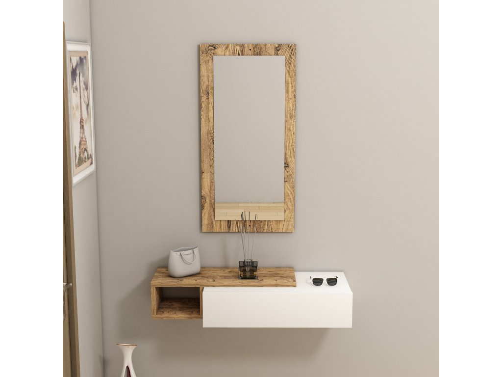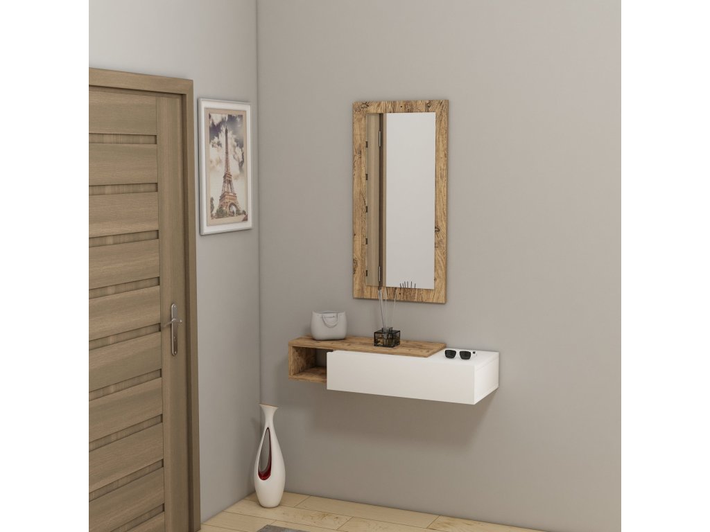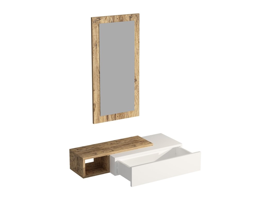 Stolík MAINE je ideálnym riešením pre predsiene, kde je kladený dôraz na funkčnosť a úsporu priestoru. Tento závesný odkladací stolík je vybavený zásuvkou, regálom a zrkadlom, čo vám umožní efektívnu organizáciu vašich každodenných potrieb a dodá vašej predsieni štýlový vzhľad.