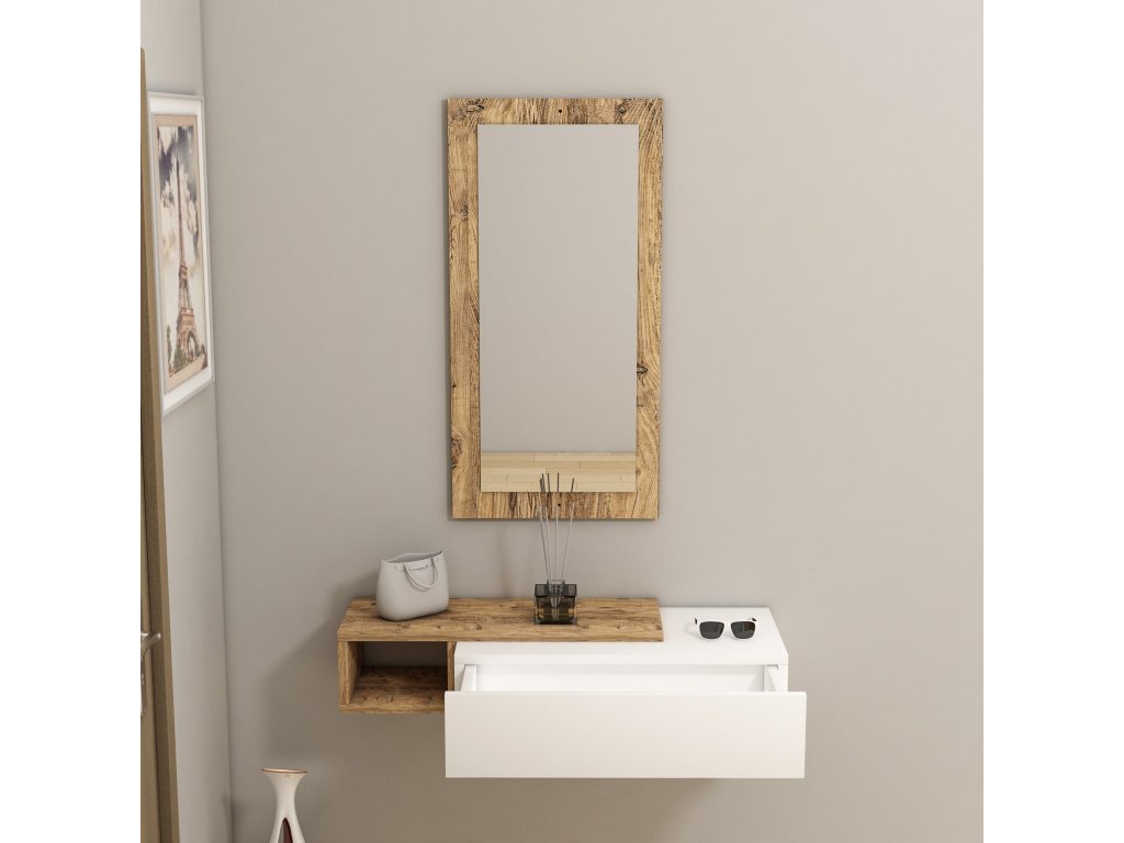 Závesná konzola so zrkadlom MAINE, borovica Atlantic/biela