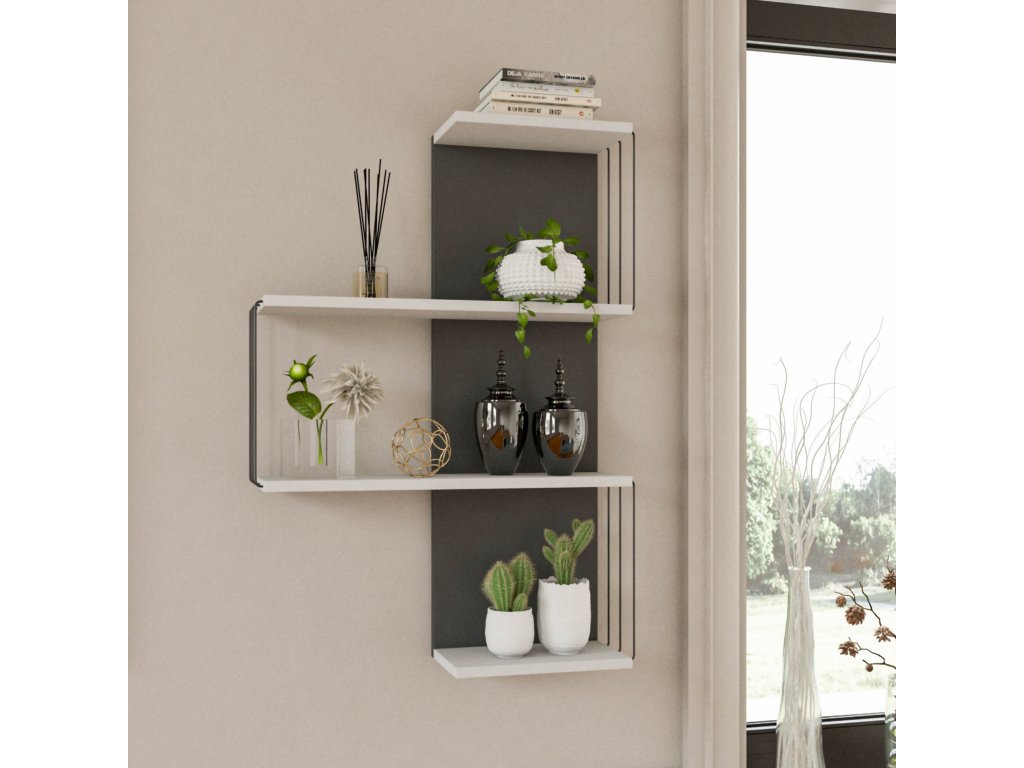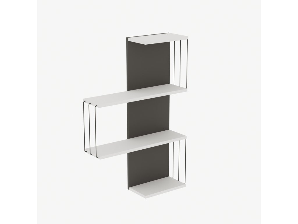 LAMA je elegantná nástenná polica, ktorá dodá vašej obývacej izbe štýlový a praktický prvok. Kombinácia antracitovej a bielej farby vytvára moderný a nadčasový dizajn, ktorý sa skvele hodí do akéhokoľvek interiéru.
